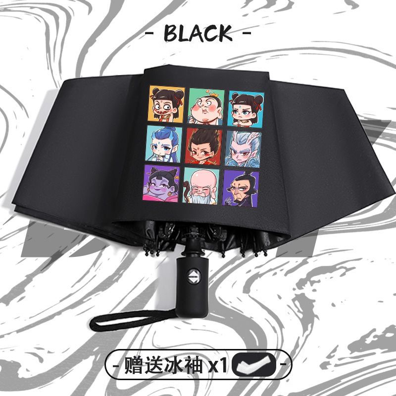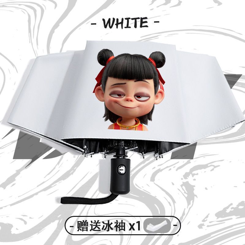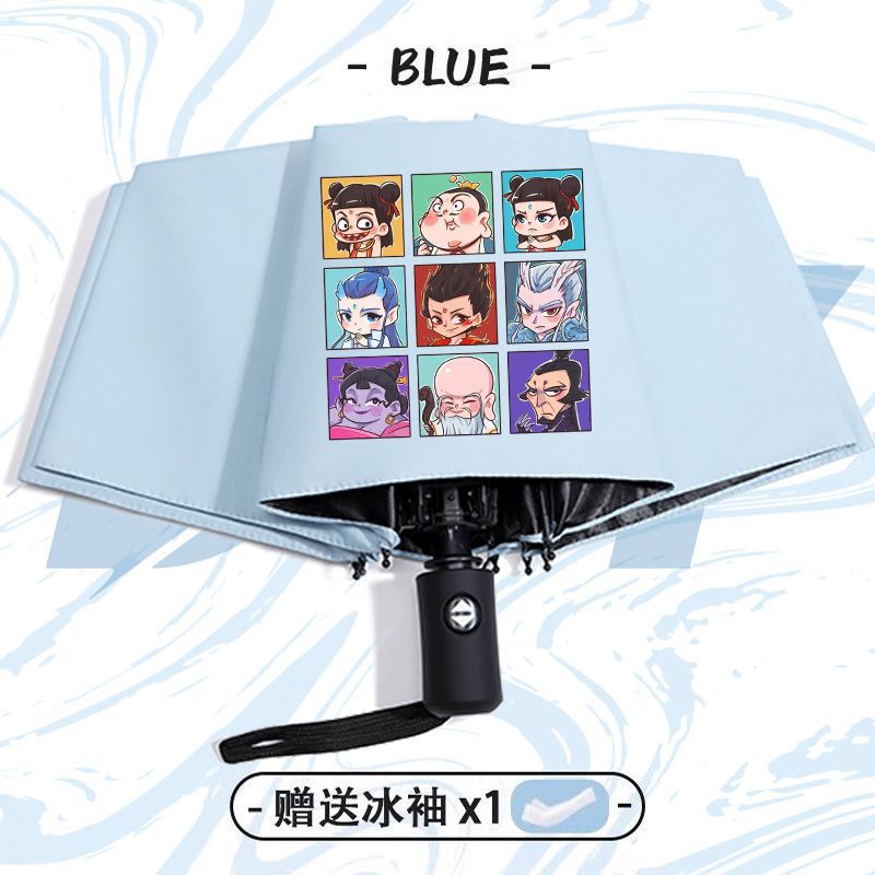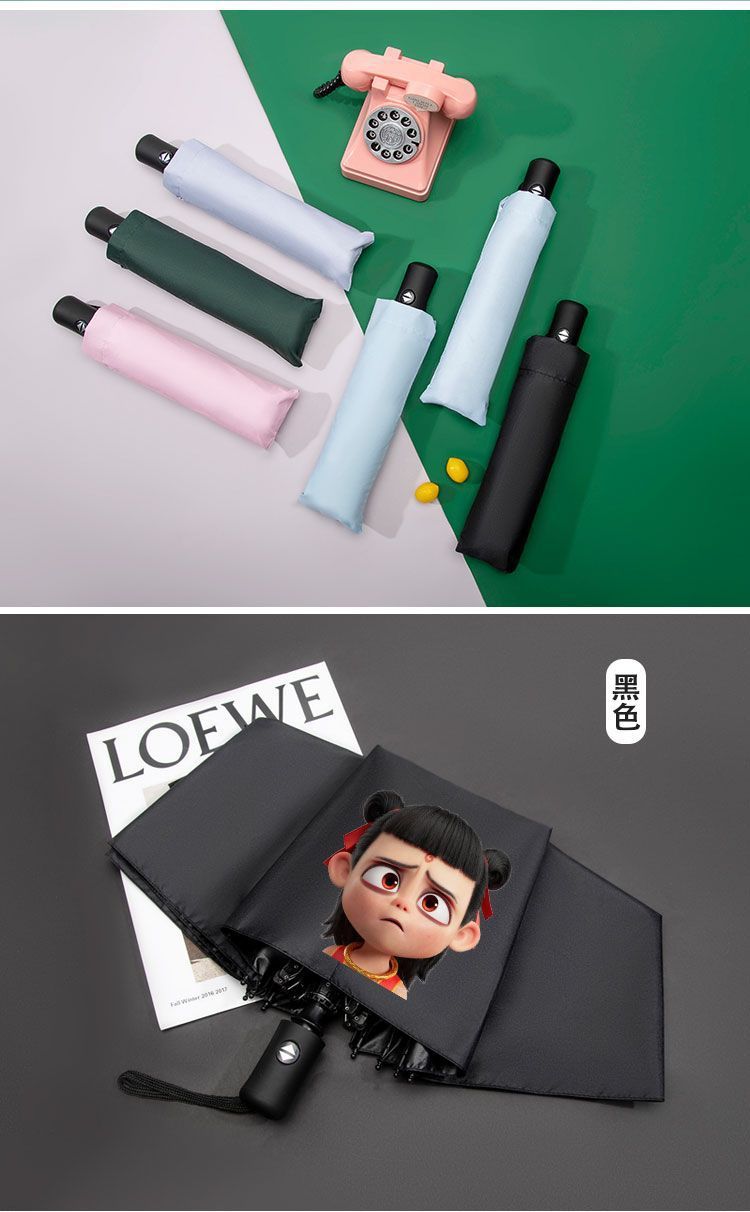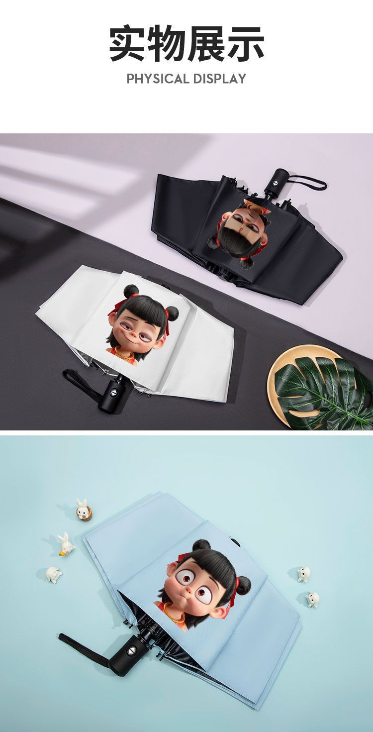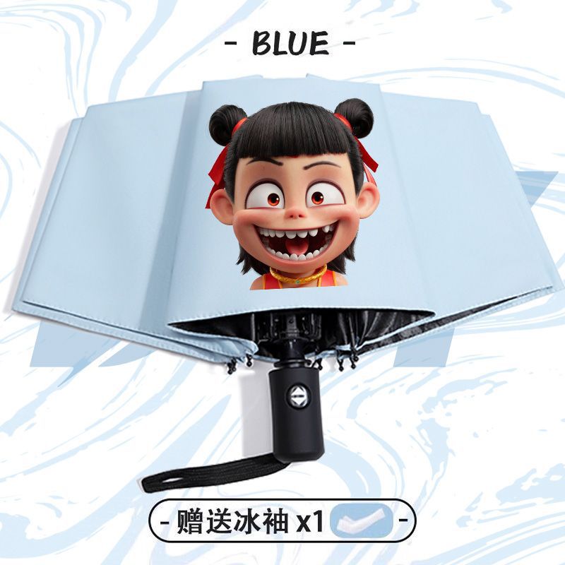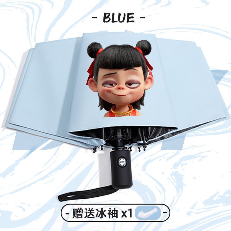 Ao Bing Nezha 공동 우산 어린이 소년 햇빛 비 이중 사용 소녀 선 스크린 접기 자동 우산 학생 중등스토어 가기