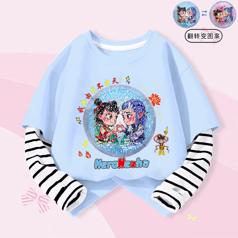 어린 이용 긴팔 퓨어 코튼 페이크 2 피스 캐주얼 탑, 소년 소녀 봄, 가을을위한 가역 패턴 이종 옷스토어 가기