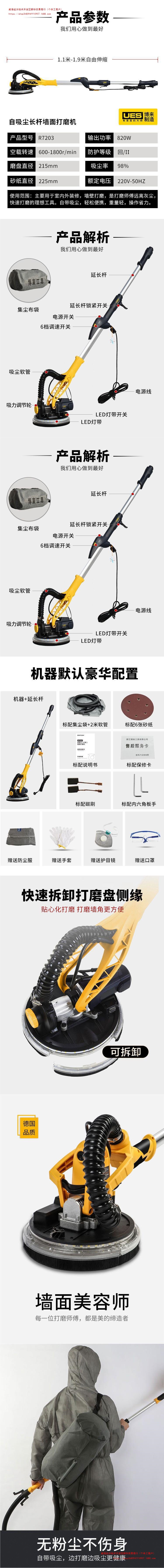 볼라이 벽 그라인더 자체 프라이밍 긴 막대 먼지없는 벽 그라인더 퍼티 모래 사포 기계 볼트 전기