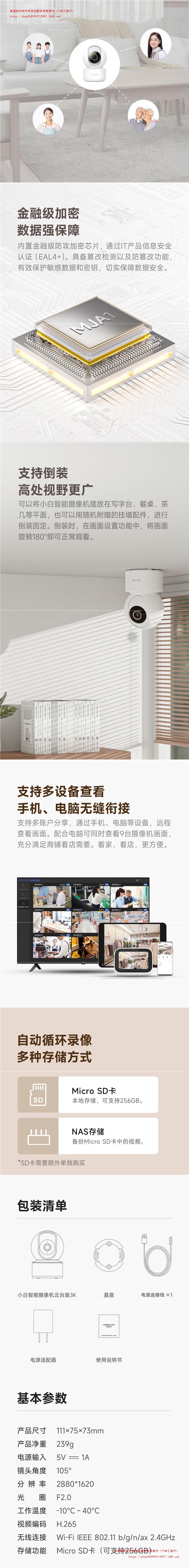 • 3K【신제품】듀얼 팬/틸트 Mijia 상위 버전-31일 재생 + 2m 전원 코드 +