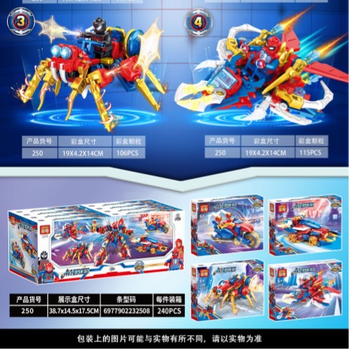 Leqi 250 대형 박스 작은 입자 조립 빌딩 블록 거미 mech 모델 소년 어린이 장난감 도매스토어 가기
