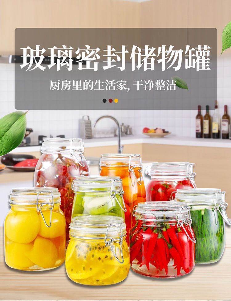 1 주 가구 사람들 유리 병 봉인 항아리 음식 항아리 투명한 단일 절임 통조림 내부 뚜껑 발코니 통조림스토어 가기