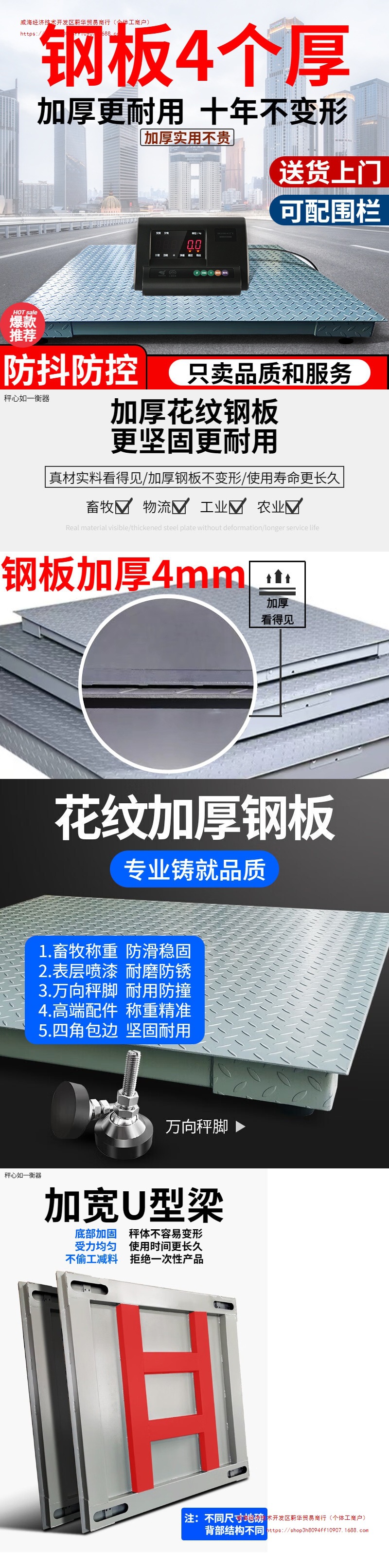 • 4개의 두꺼운 바닥형 저울(무선 모델)-1.5* 2.5m 0-3톤(울타리 포함)