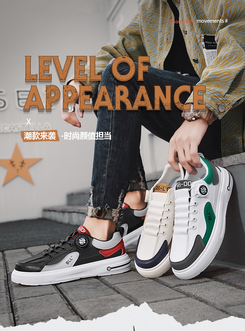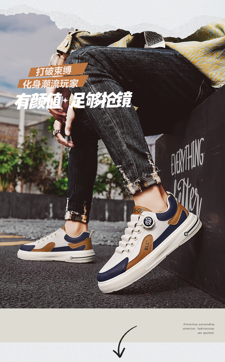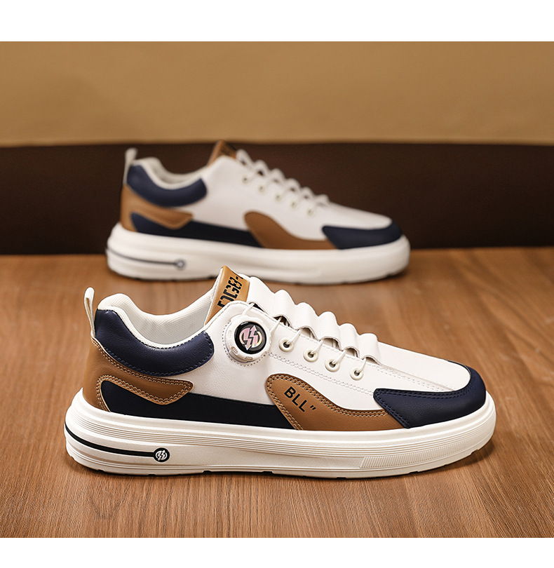 남자 유행 신발 2025 봄 새로운 도착 학생을위한 회전 버튼 운동화 청산 년 캐주얼 가죽 스포츠 남성 신발스토어 가기