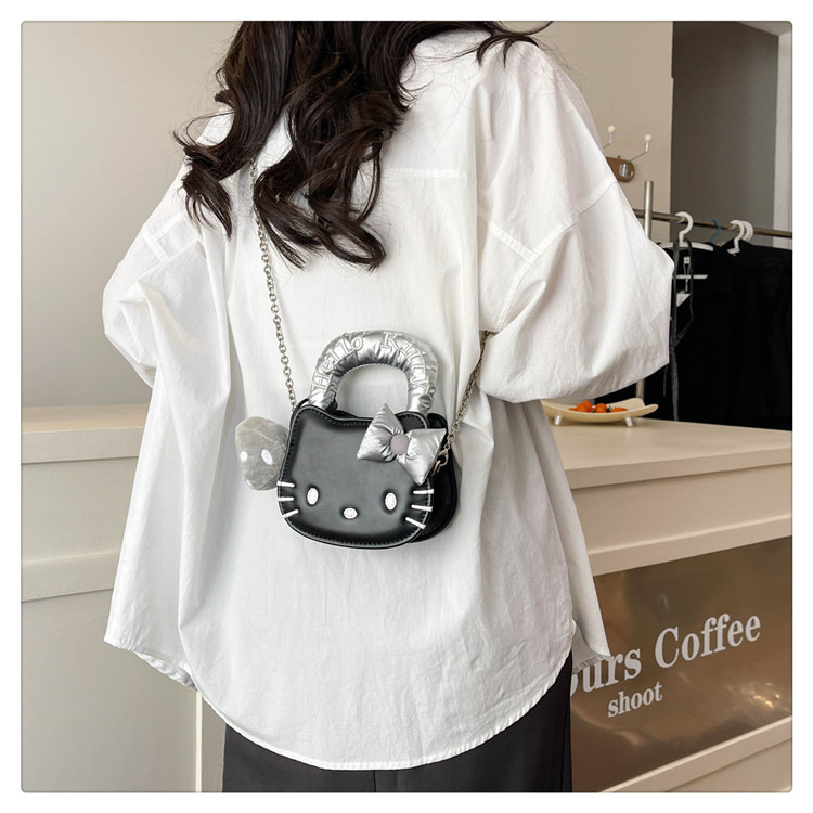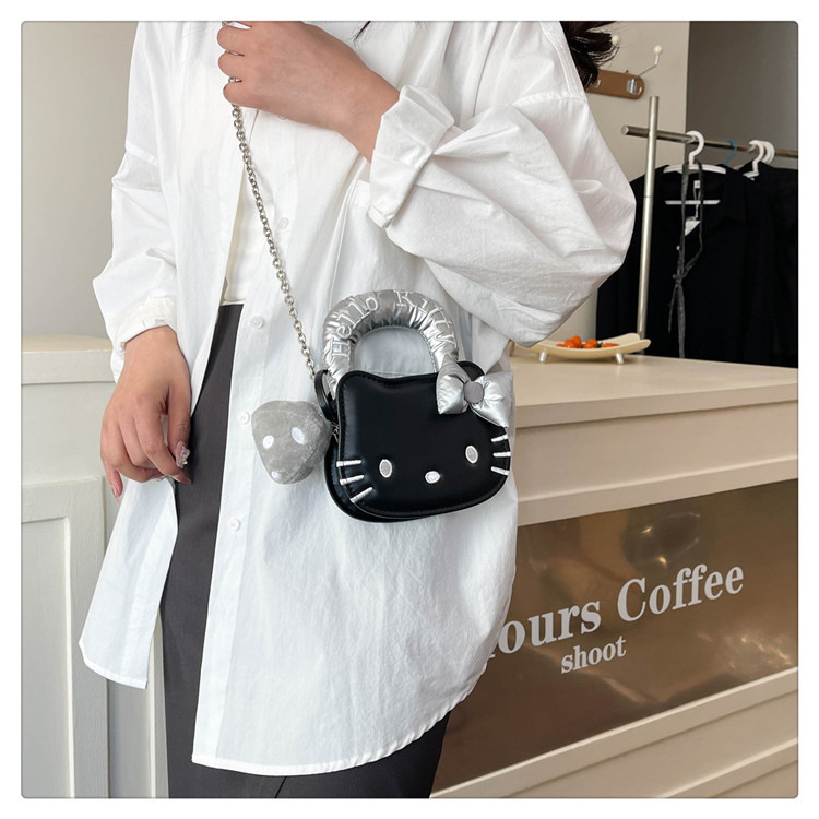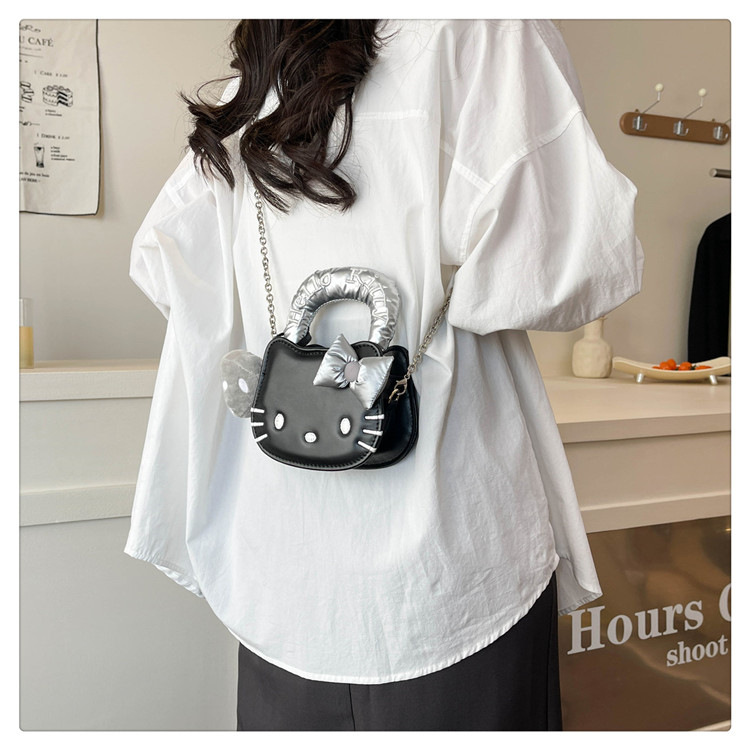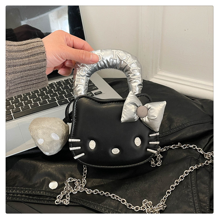 귀여운 KT 고양이 패션 만화 체인 새로운 폭발성 변화 크로스 바디 백을 운반하는 미니 작은 가방 휴대용 손