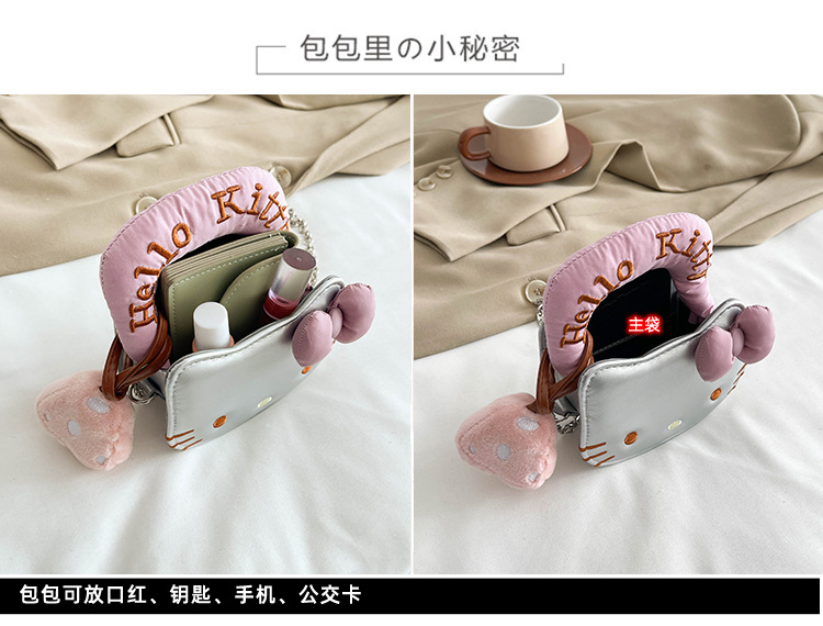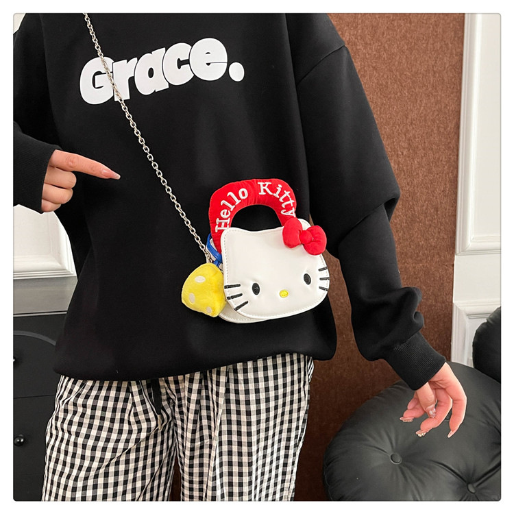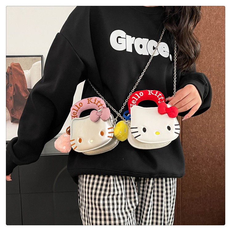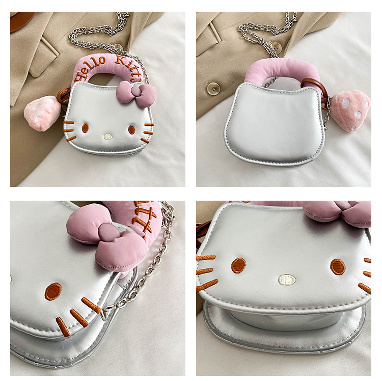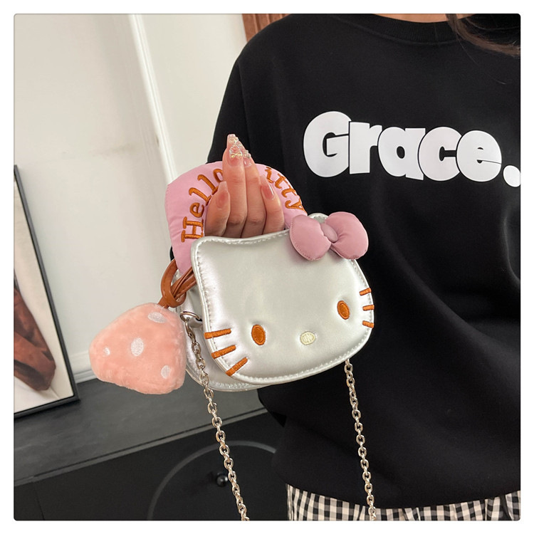 귀여운 KT 고양이 패션 만화 체인 새로운 폭발성 변화 크로스 바디 백을 운반하는 미니 작은 가방 휴대용 손스토어 가기