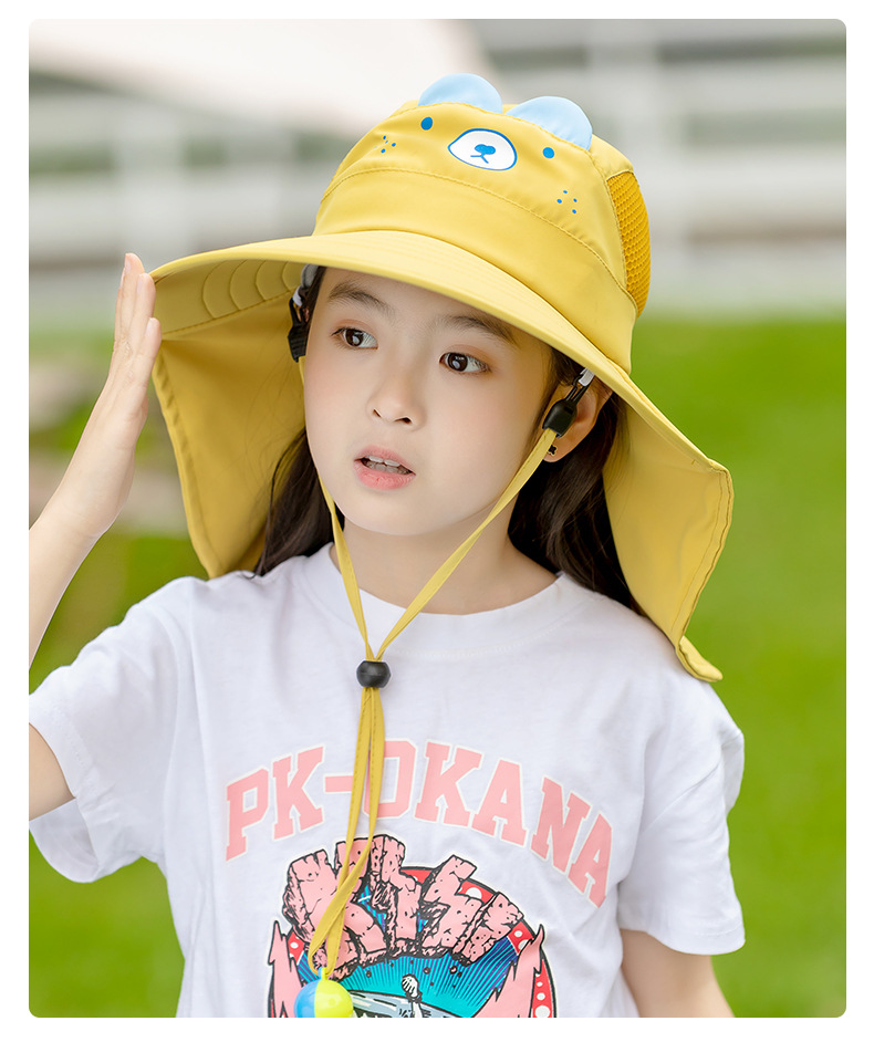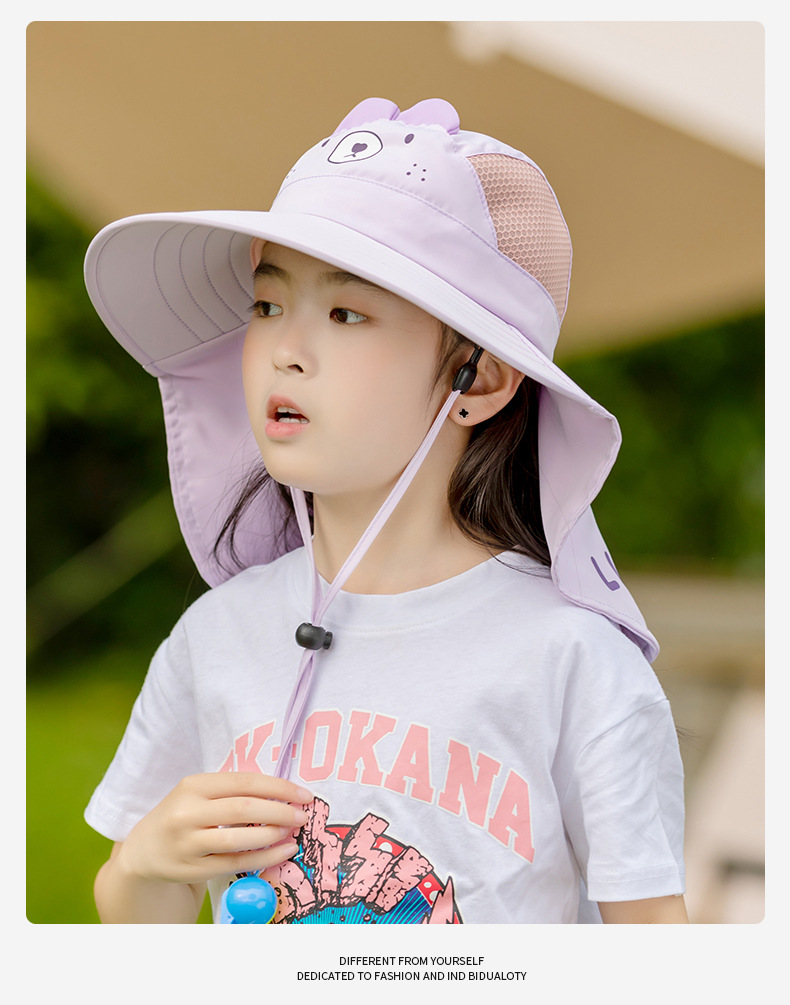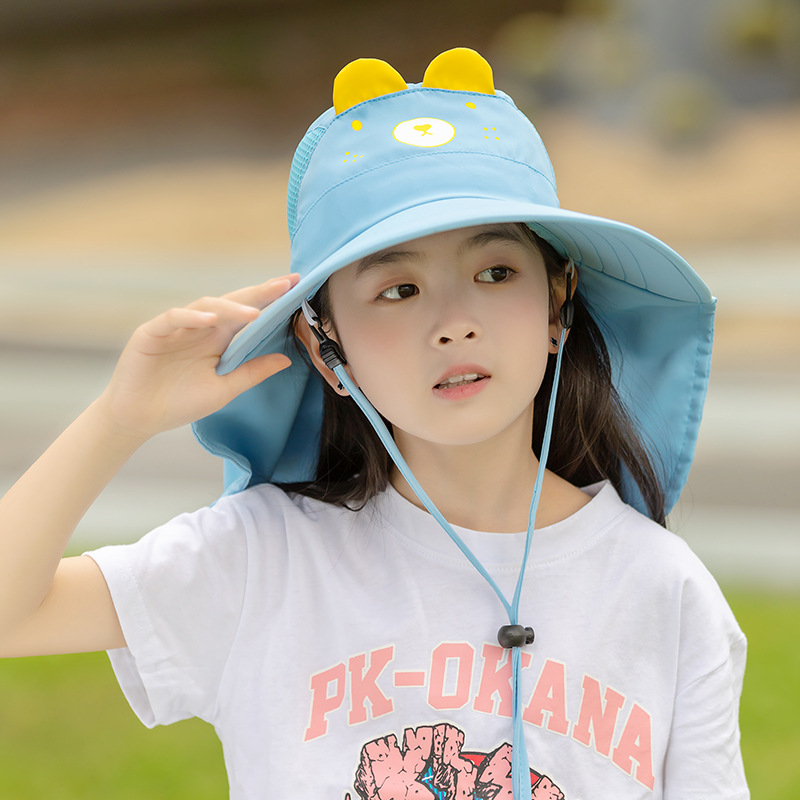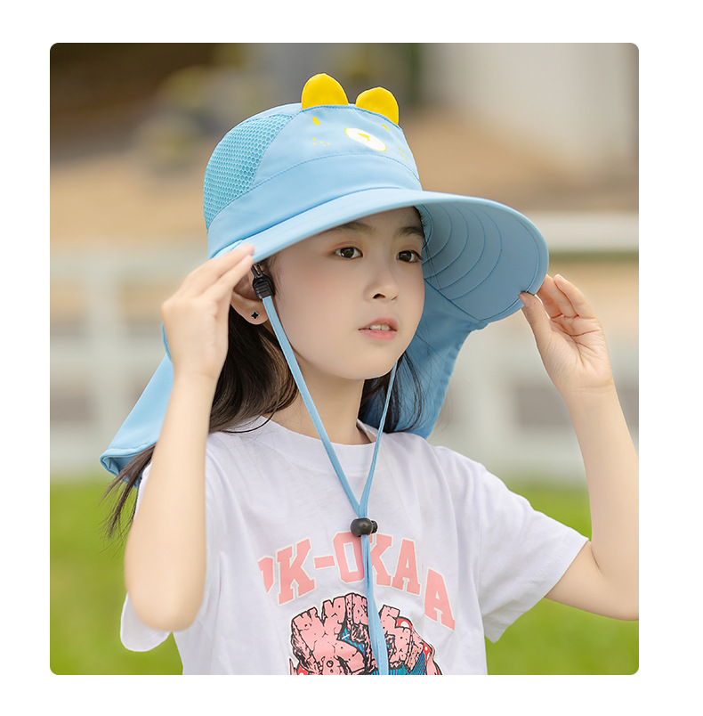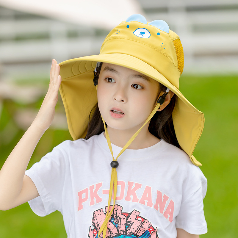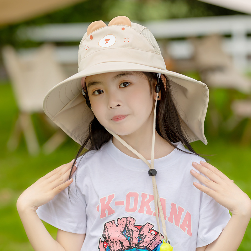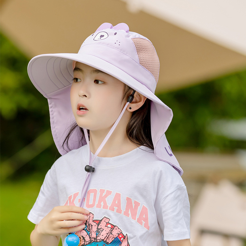 어린이 모자 여름 햇살 모자 소녀 큰 브림 메쉬 통기성 어부 모자 아기 해변 목도리 UV 보호