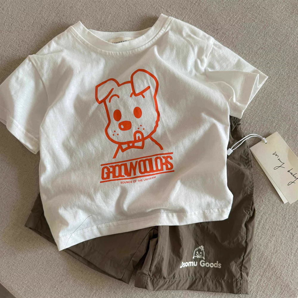 잘 생긴 어린이 반소매 2025 여름 소년과 소녀 일본 패션 브랜드 만화 귀여운 T 아기 서양식 반소매 티셔츠스토어 가기