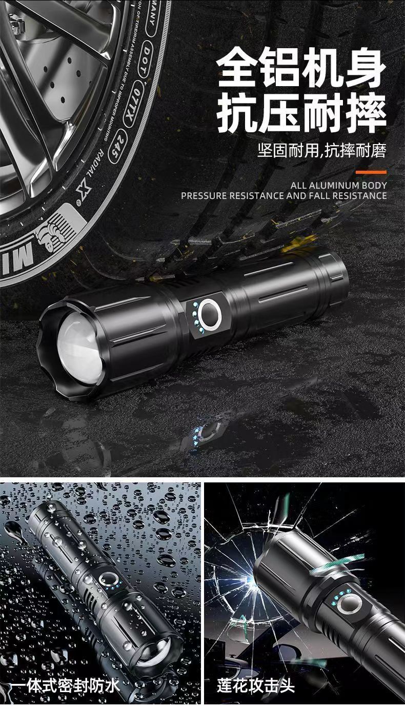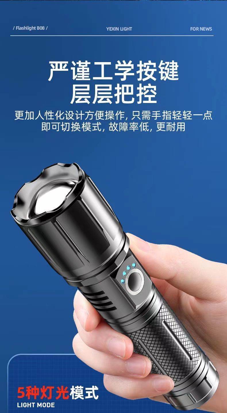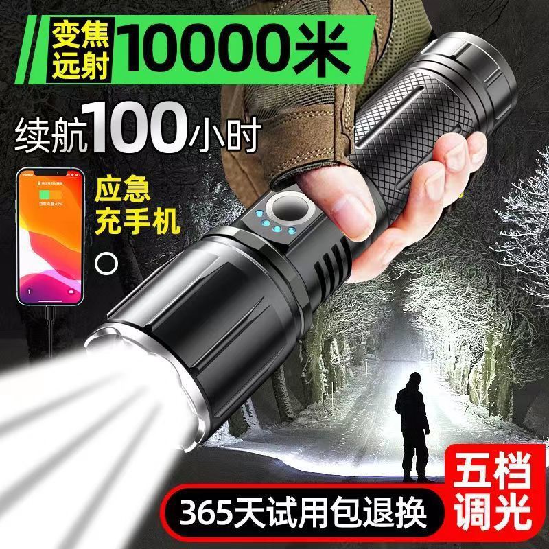 강한 빛 손전등 가정용 강한 빛 등산 특수 원격 손 램프 충전식 흰색 레이저 슈퍼 밝은 야외 탐조등