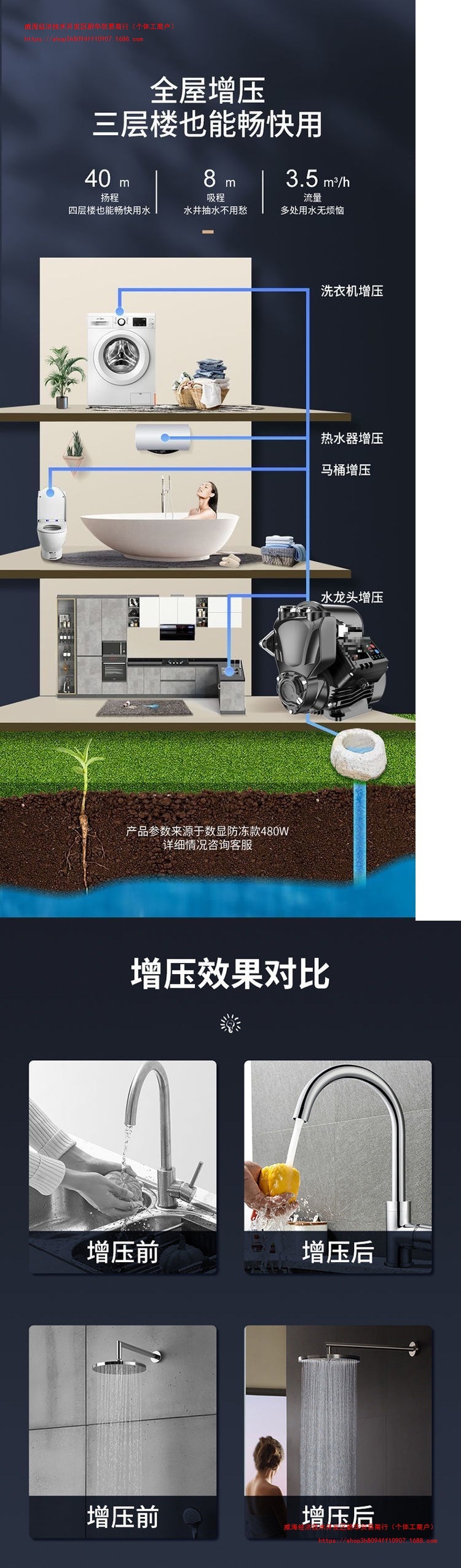 Minglei 자체 프라이밍 펌프 가정용 220V 자동 수돗물 부스터 펌프 부스터 펌프 음소거 워터 펌프 자체 프라이밍 워터 펌프스토어 가기