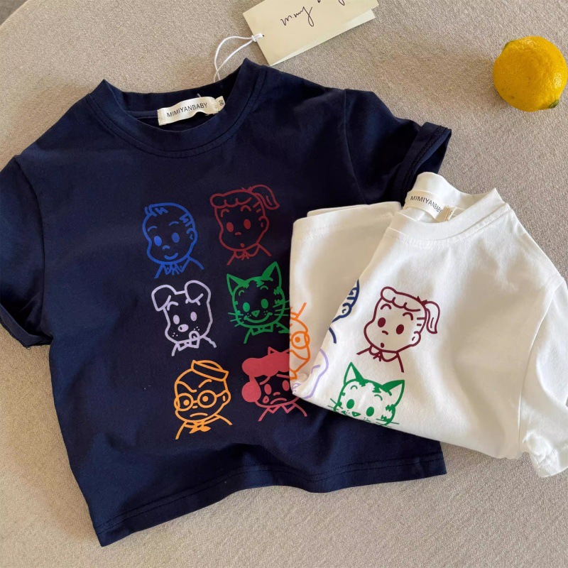 Lin Lin Ma 어린이 반팔 2025 여름 일본 스타일 유행 브랜드 만화 코튼 티셔츠 소년 소녀스토어 가기