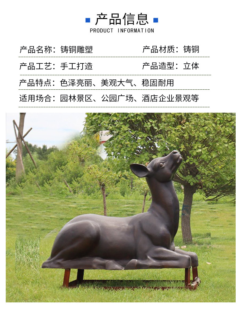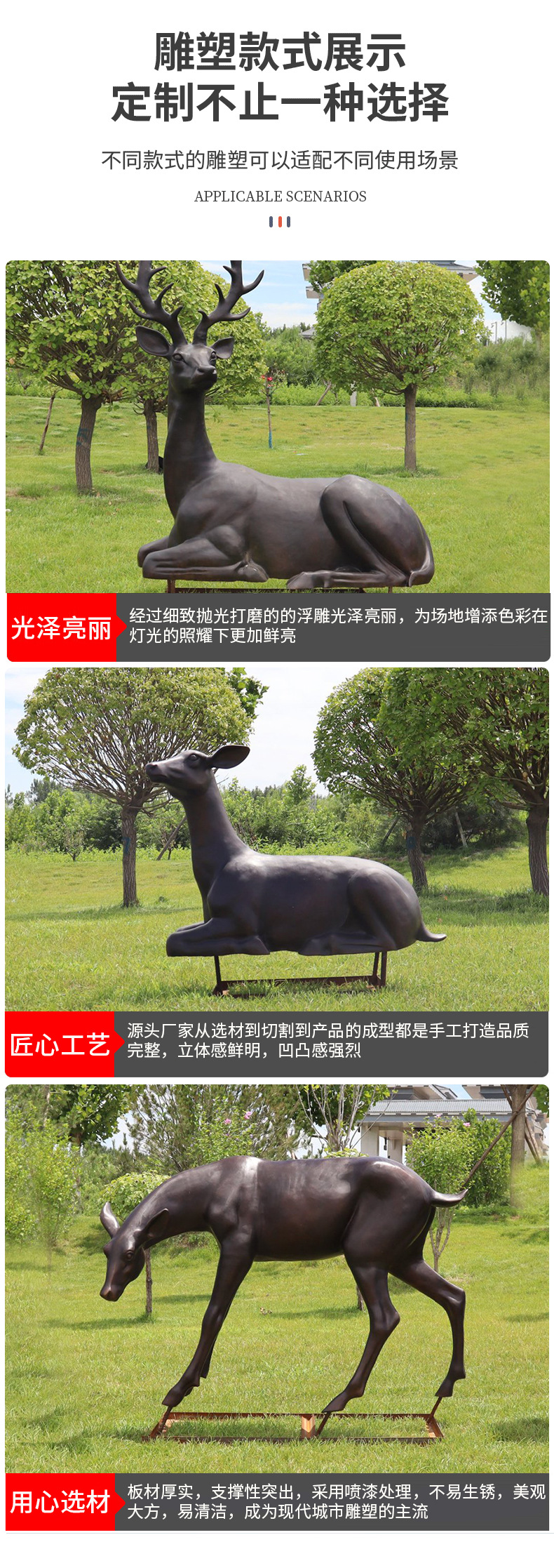 캐스트 구리 사슴 조각 풍경 민속 캠퍼스 예술 장식 공원 타운십 도로 상징적 인 동물 조각