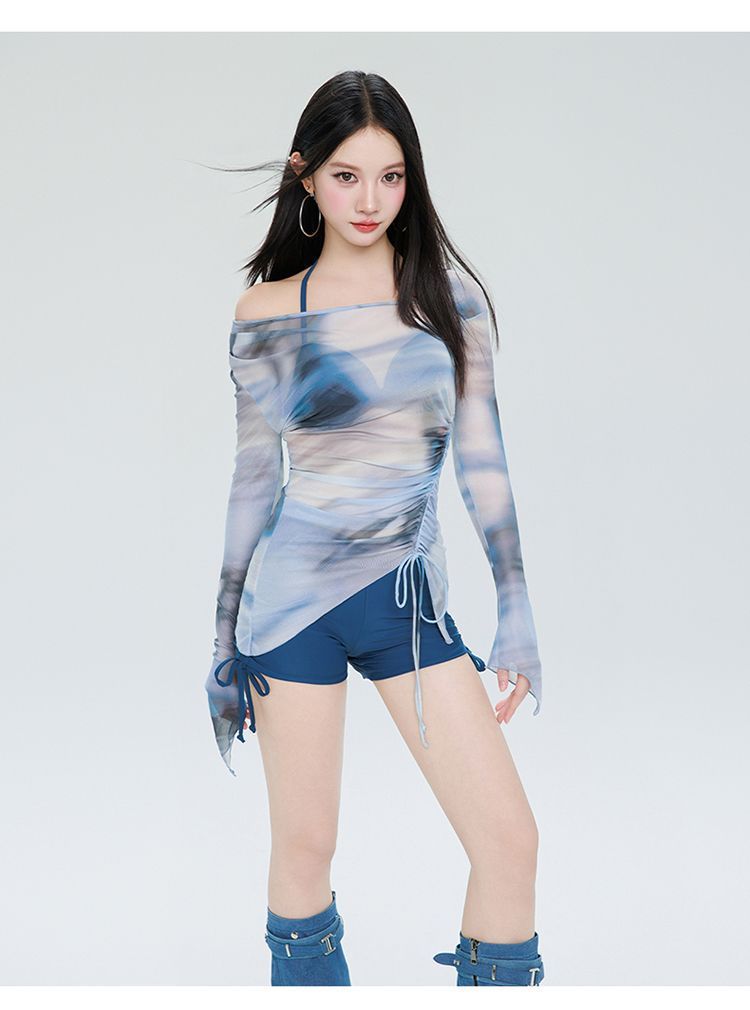스플릿 수영복 여성의 섹시한 작은 가슴 강철 브래지어 모여서 배꼽 슬리밍 순수한 욕망 바람 해변 휴일 온천 수영복