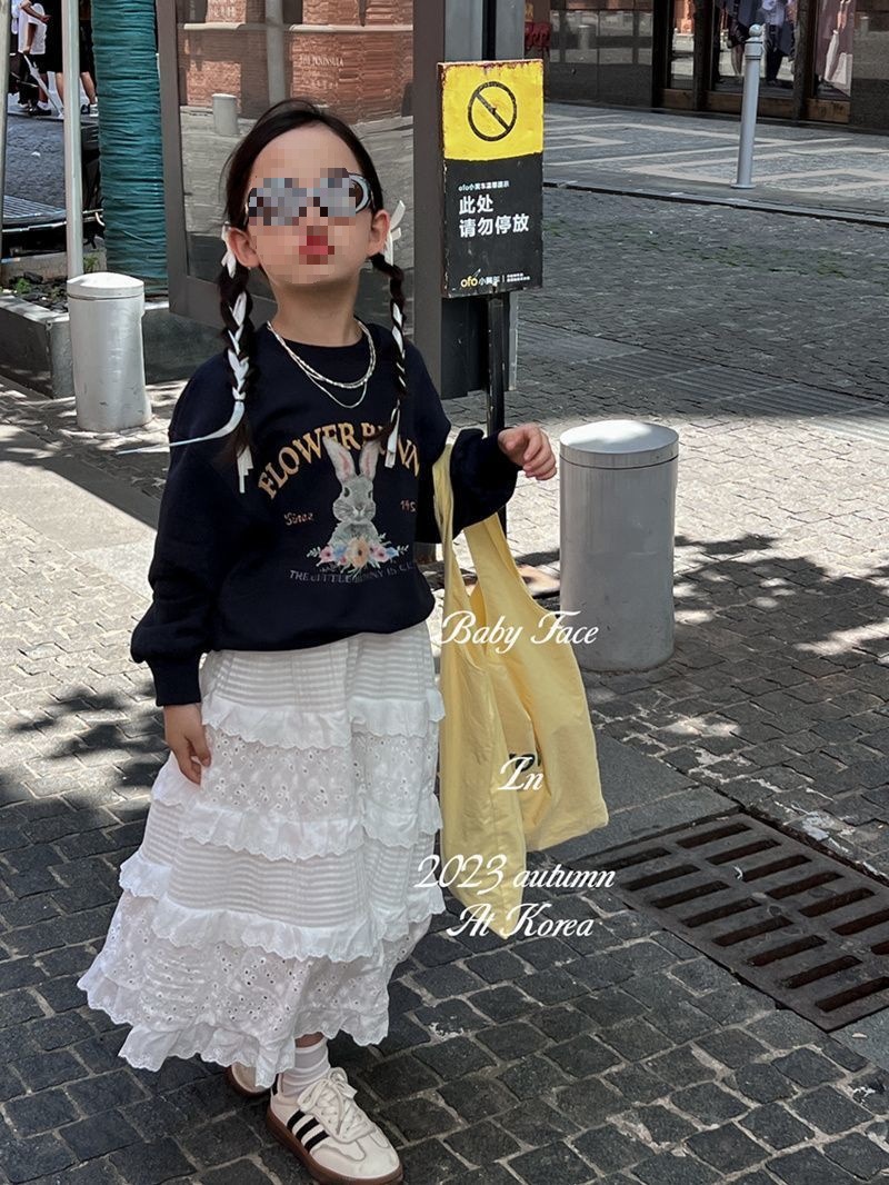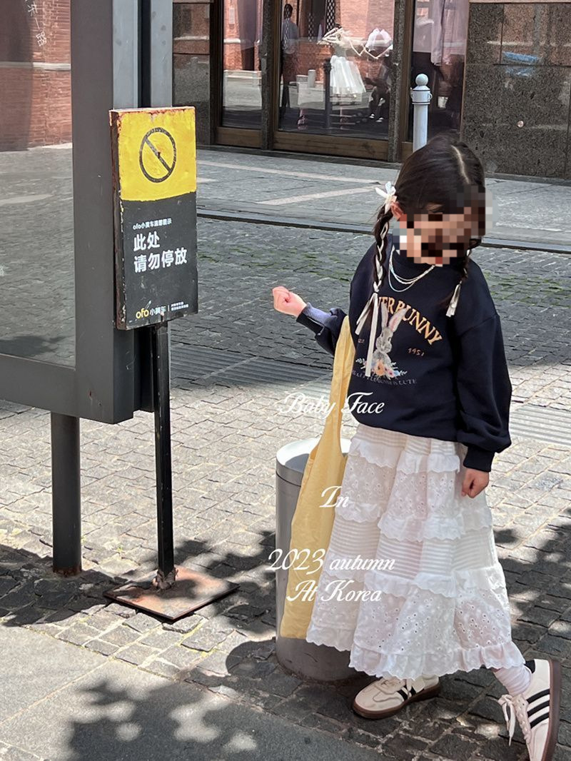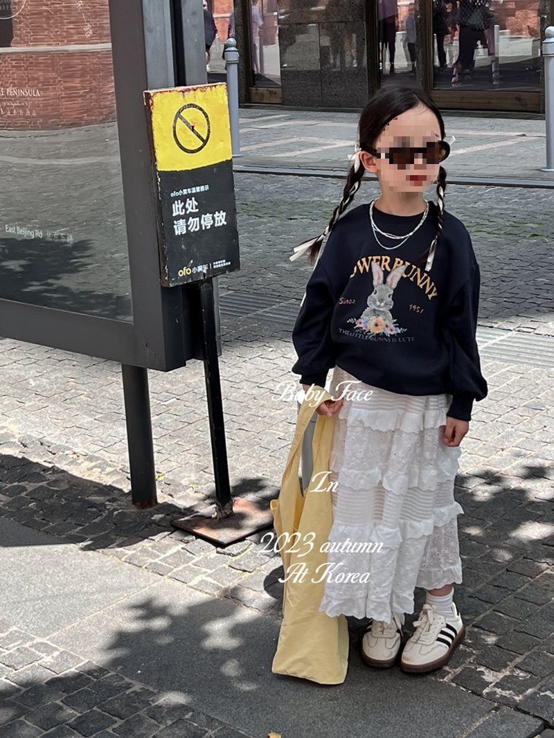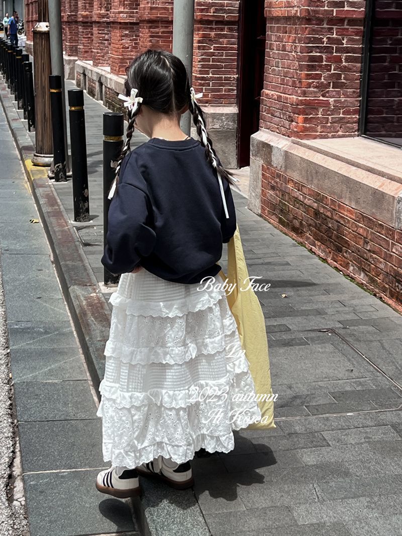 한국 아동복 봄 소녀 서양식 중대형 어린이 캐주얼 루즈 스웨터 높은 허리 케이크 스커트 롱 스커트 0197A020스토어 가기