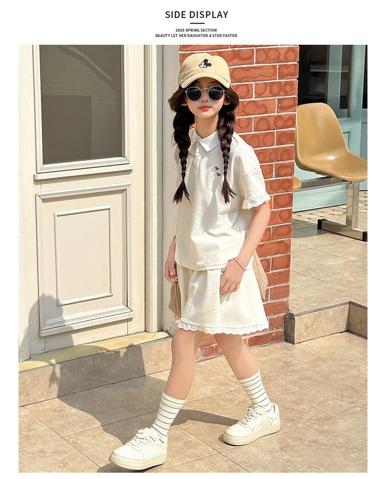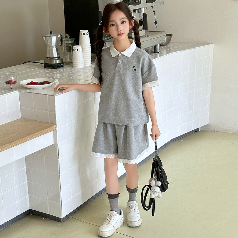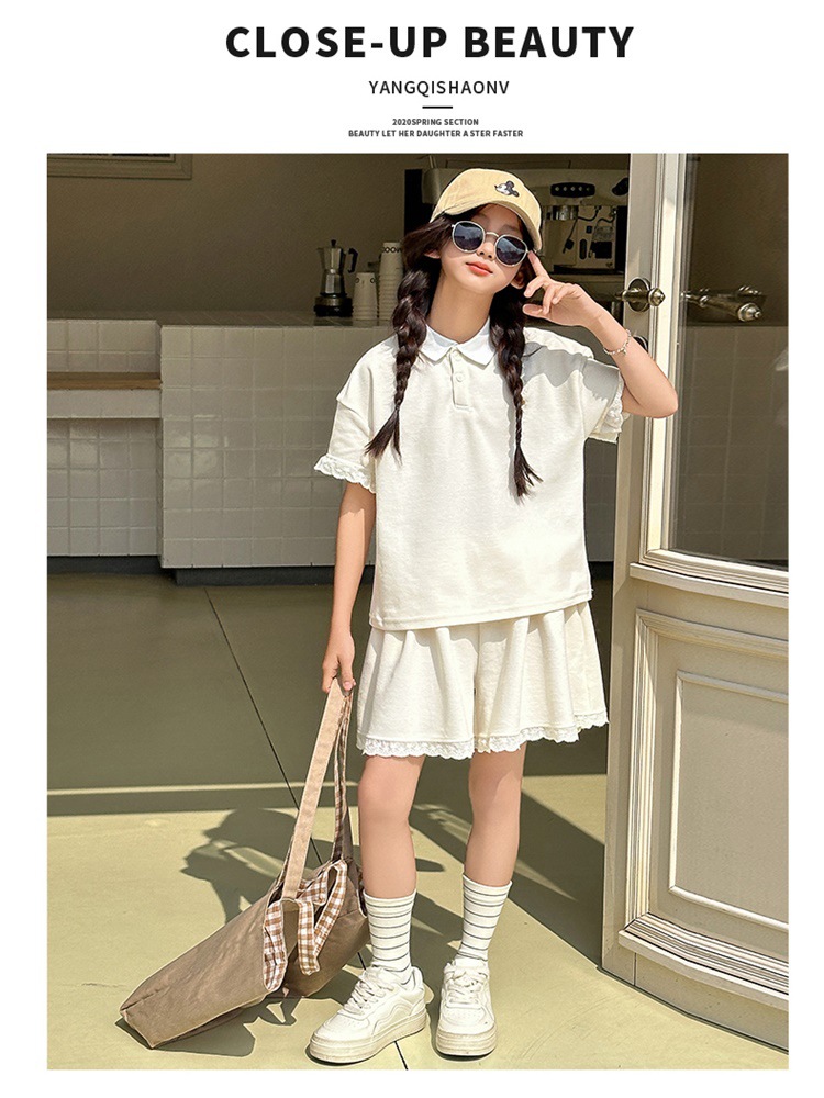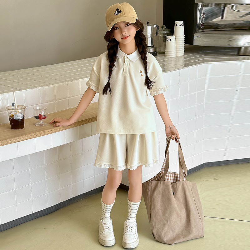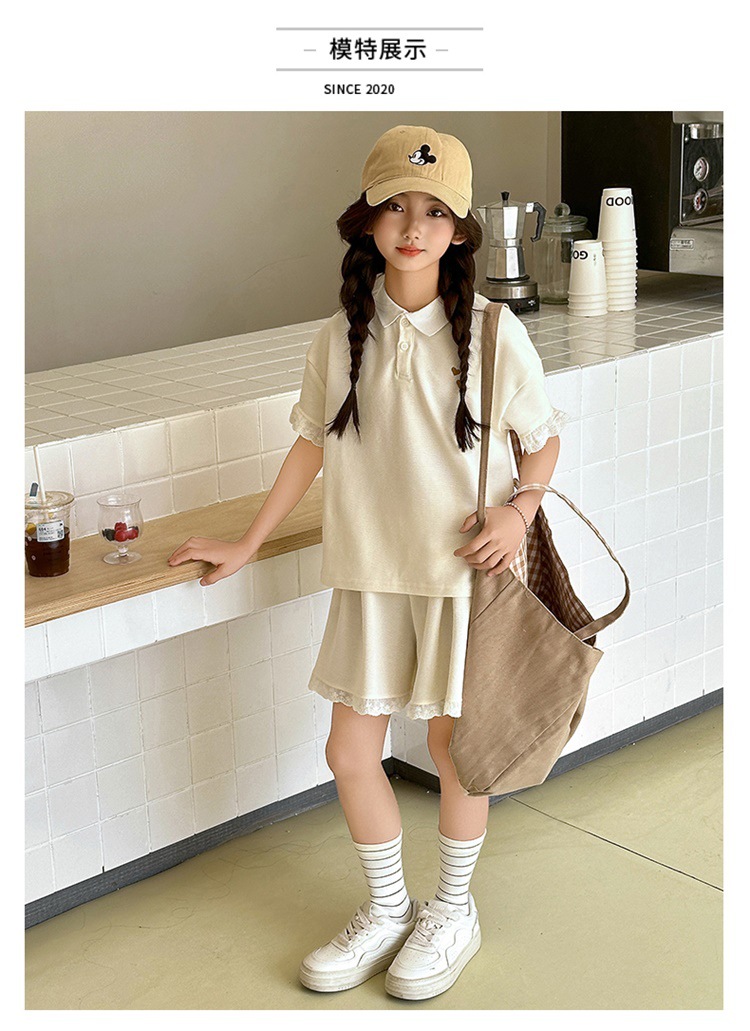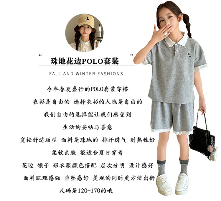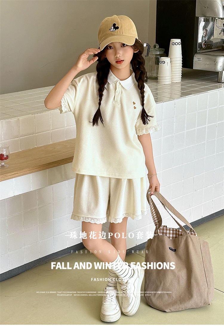 여자 세트 여름 도매 아 2025 여름 새로운 여자 반팔 티셔츠 POLO 셔츠 레이스 세트 국경스토어 가기