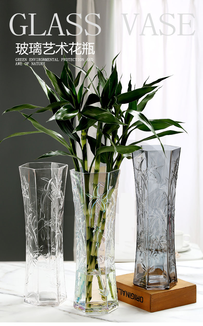 꽃병 유리 초대형 바닥 서 데스크탑 장식 수경 풍부한 대나무 물 대나무 육각형 물 올리기 거실 간단한 집