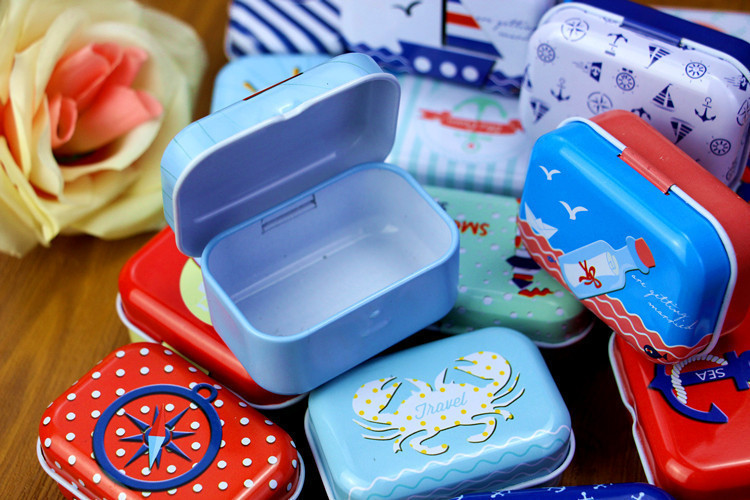 작은 보석 저장 상자 미니 상자 작은 철 상자 직사각형 철 상자 뚜껑이있는 국경 재고 틴플레이트 상자