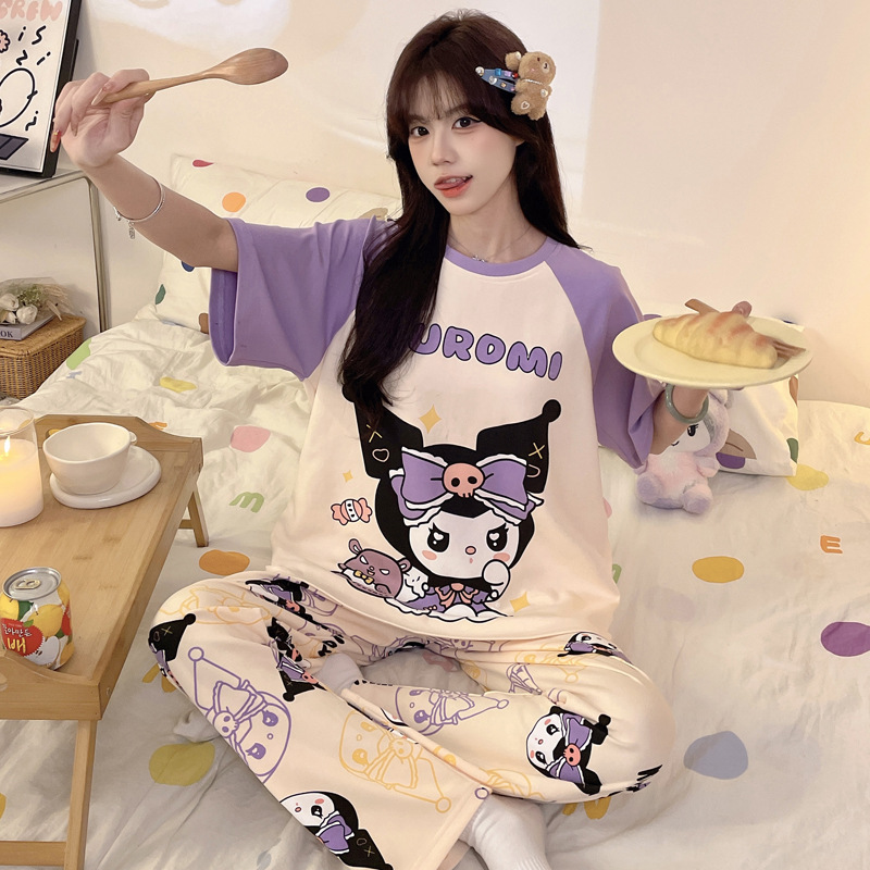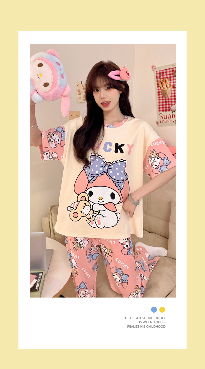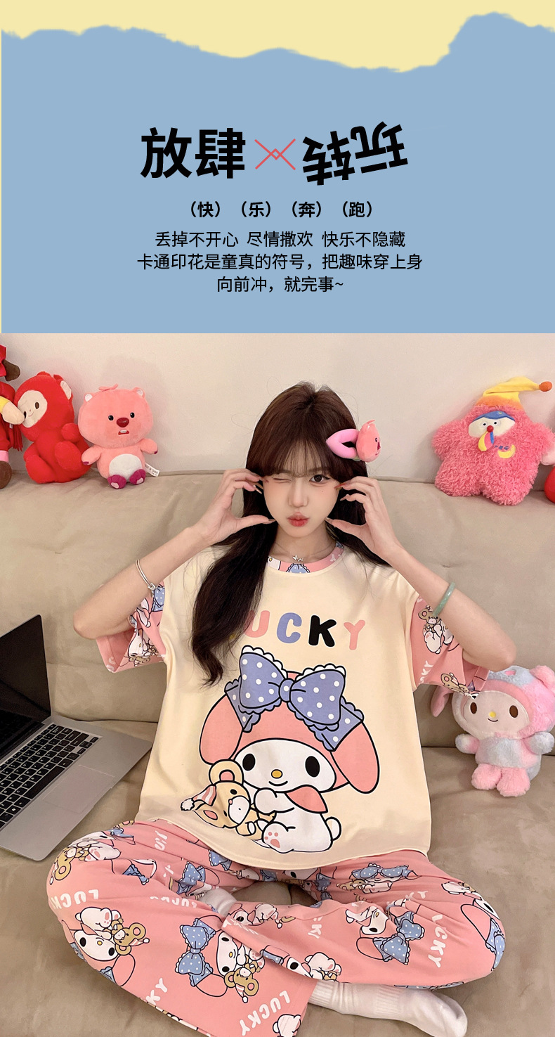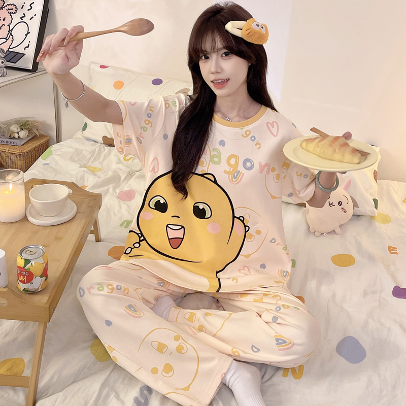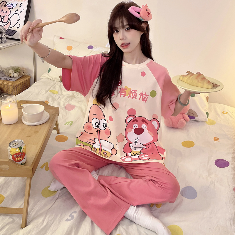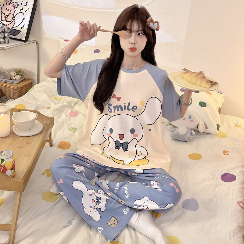 봄과 여름 여자 잠옷 중학생 반팔 바지 만화 소녀 귀여운 고등학생 18 세 홈 의류 세트