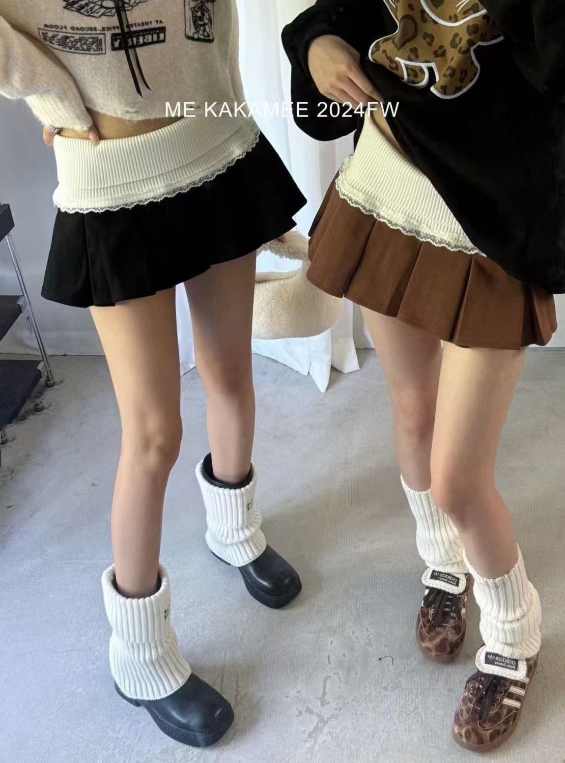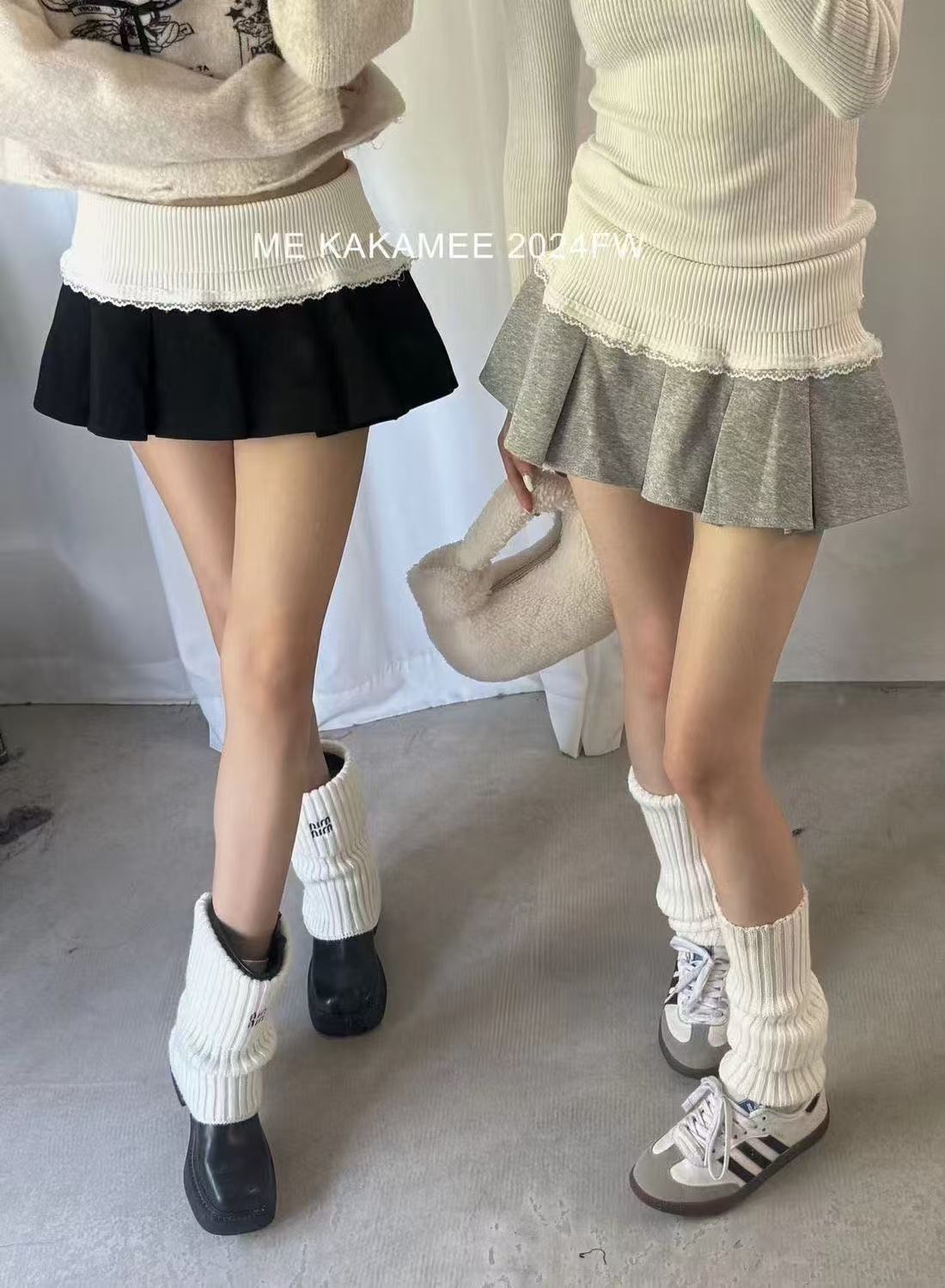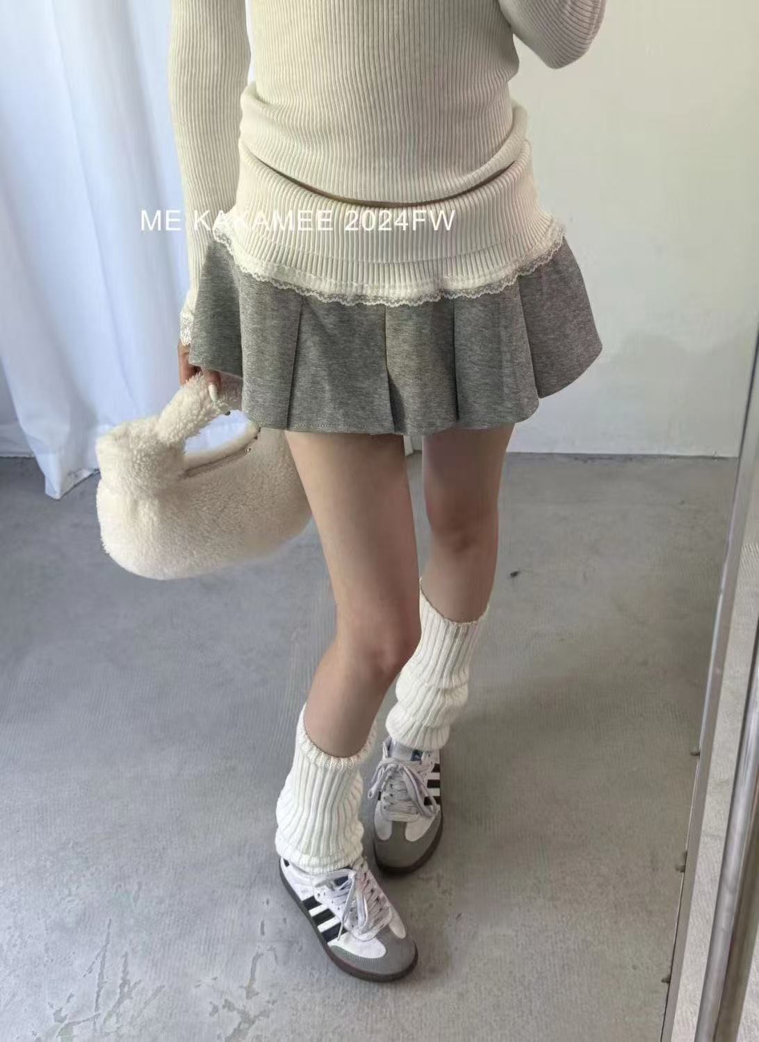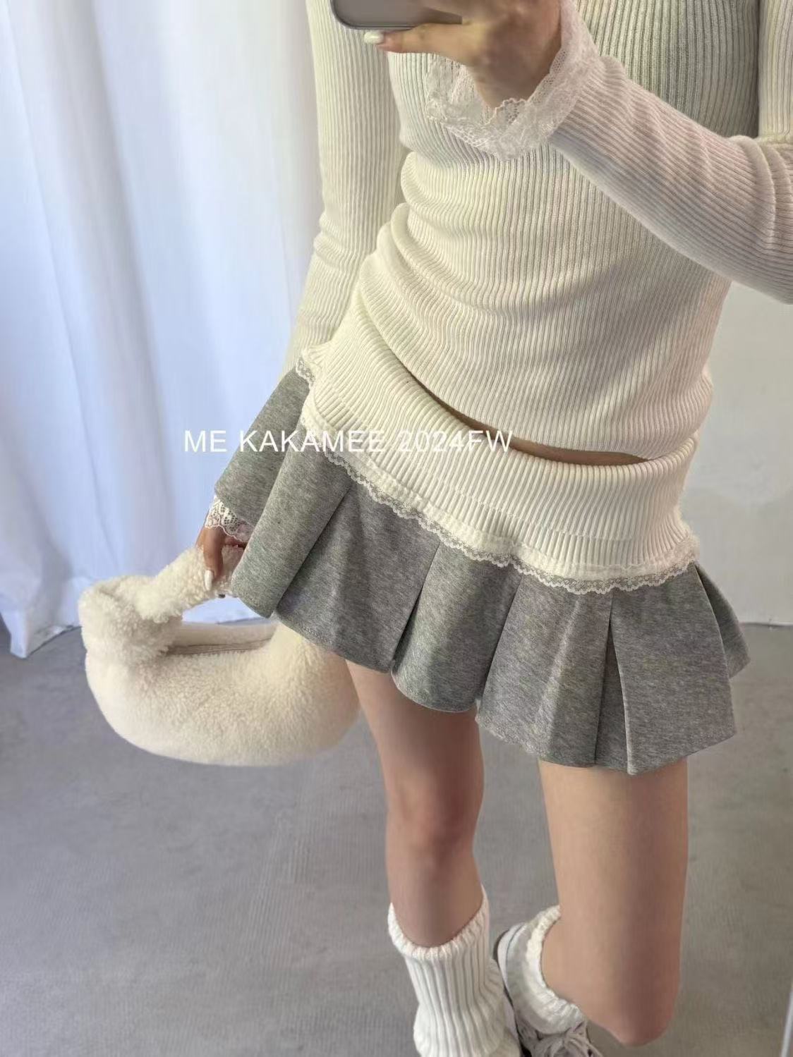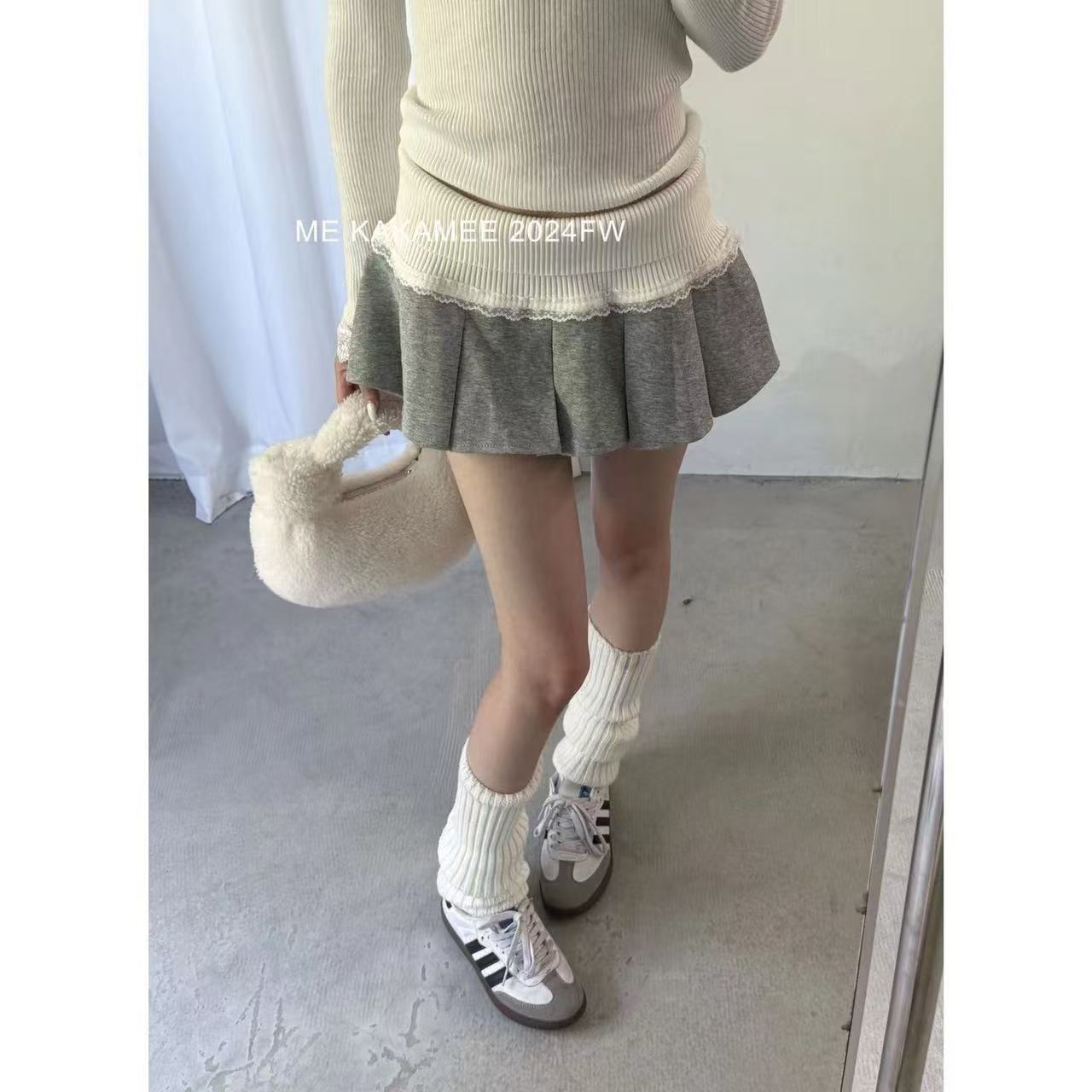 신축성 있는 허리 순수한 욕망 레이스 스플라이싱 디자인 플리츠 스커트 2025 봄 여름 신작 핫걸 하프 길이 A 라인 스커트