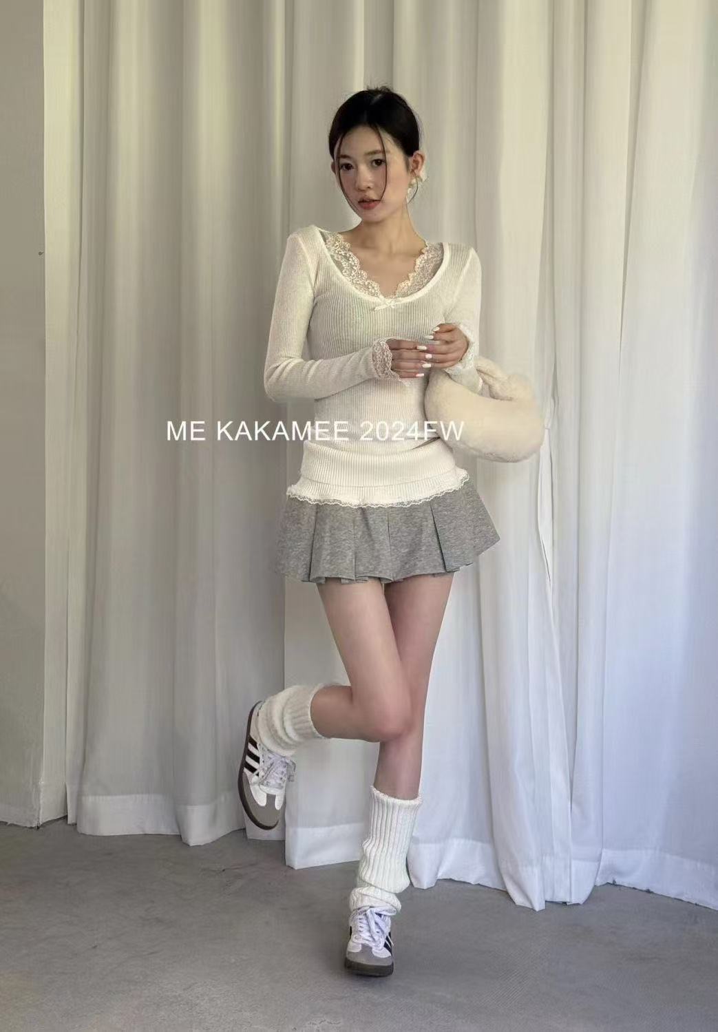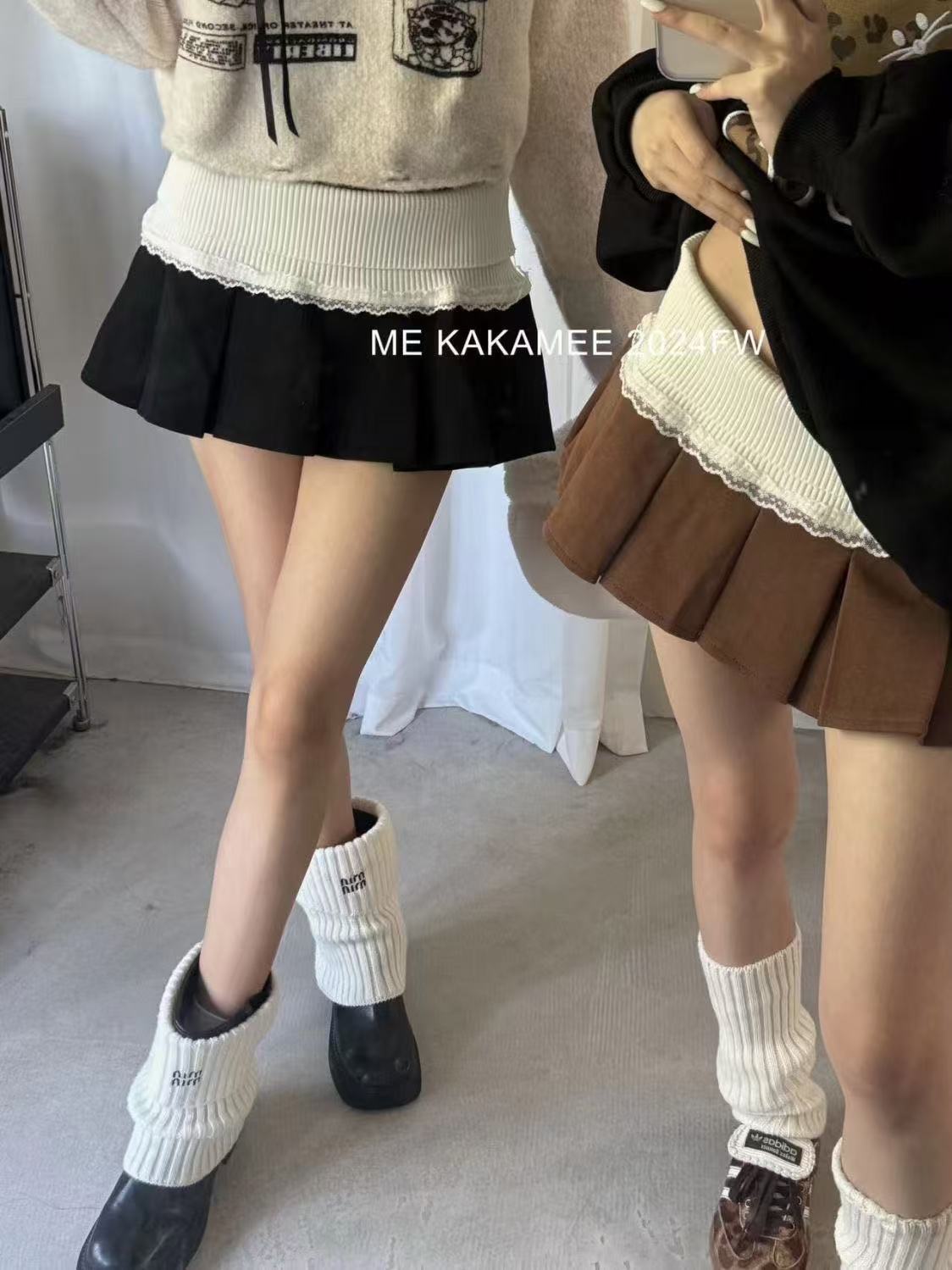 신축성 있는 허리 순수한 욕망 레이스 스플라이싱 디자인 플리츠 스커트 2025 봄 여름 신작 핫걸 하프 길이 A 라인 스커트스토어 가기