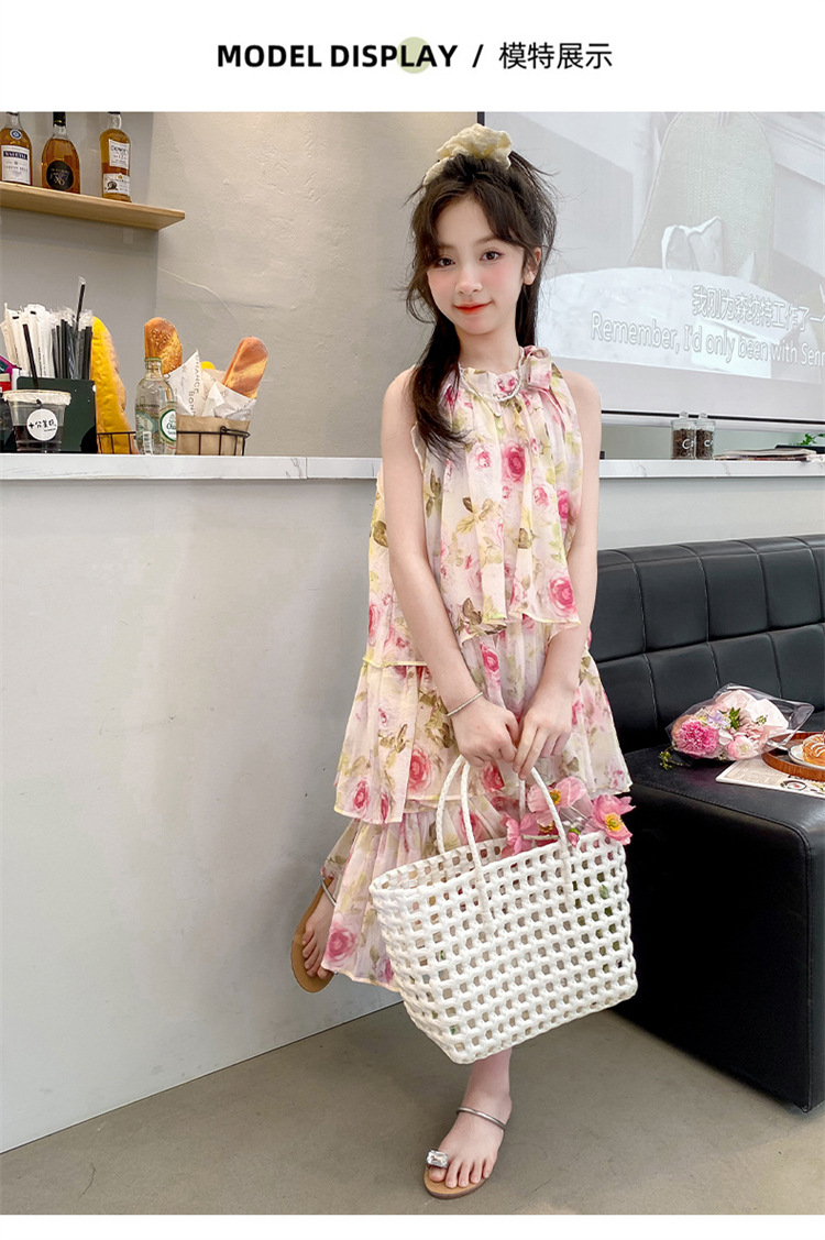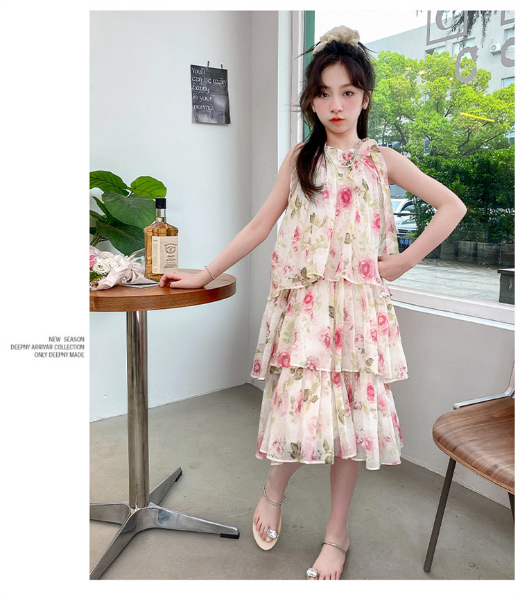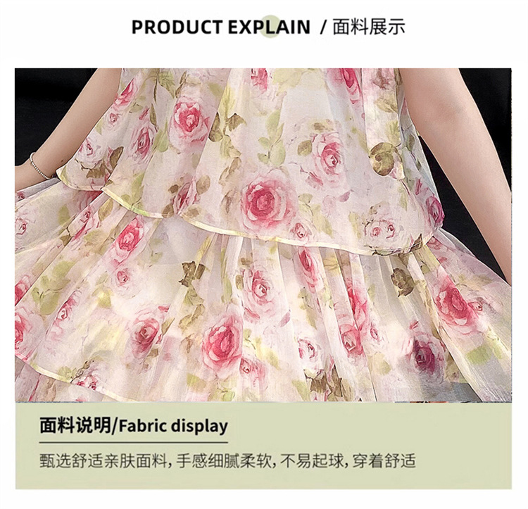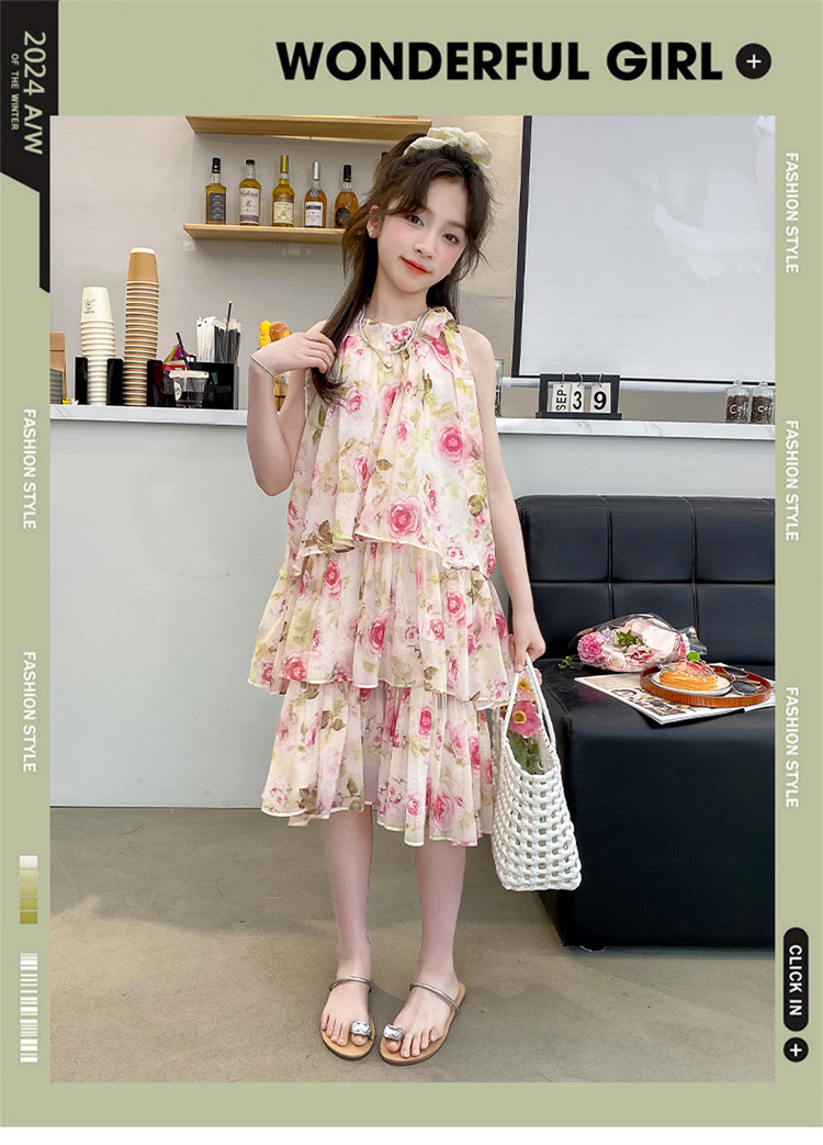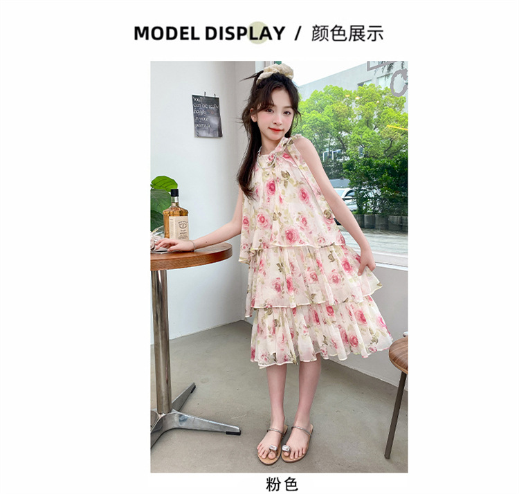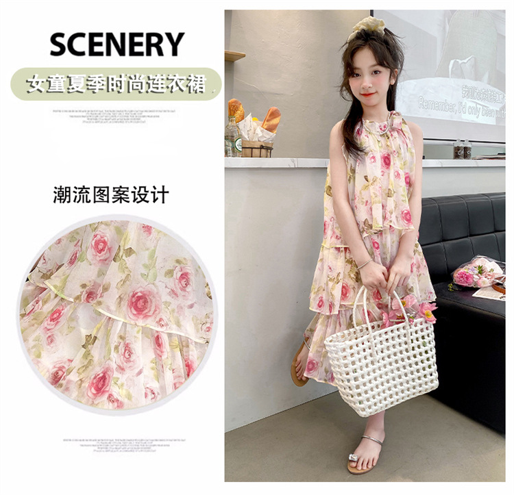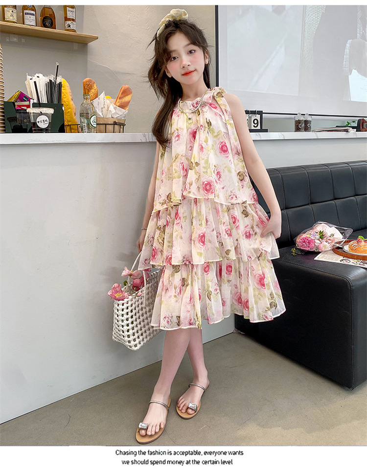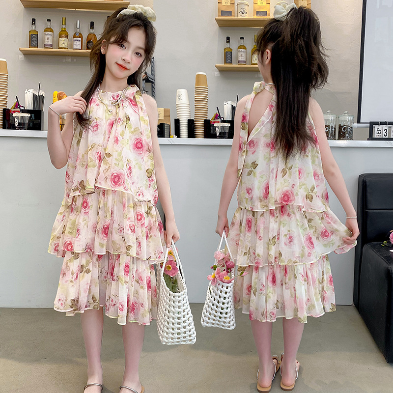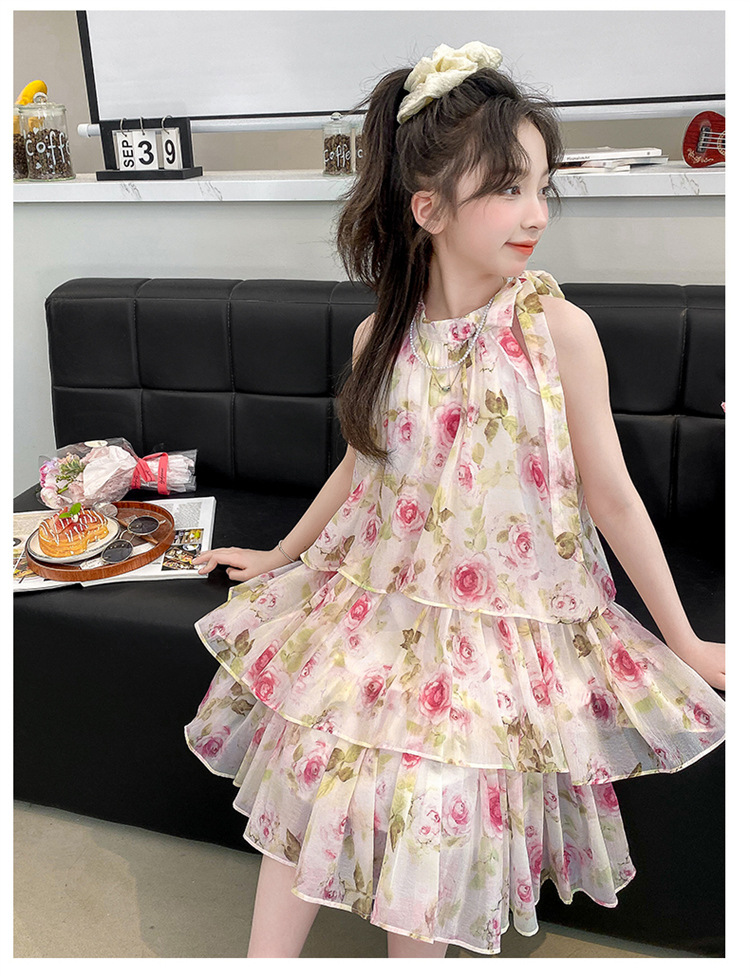 여자 여름 원피스 도매 2025 새로운 한국 소녀 장미 인쇄 케이크 원피스 국경 독점스토어 가기
