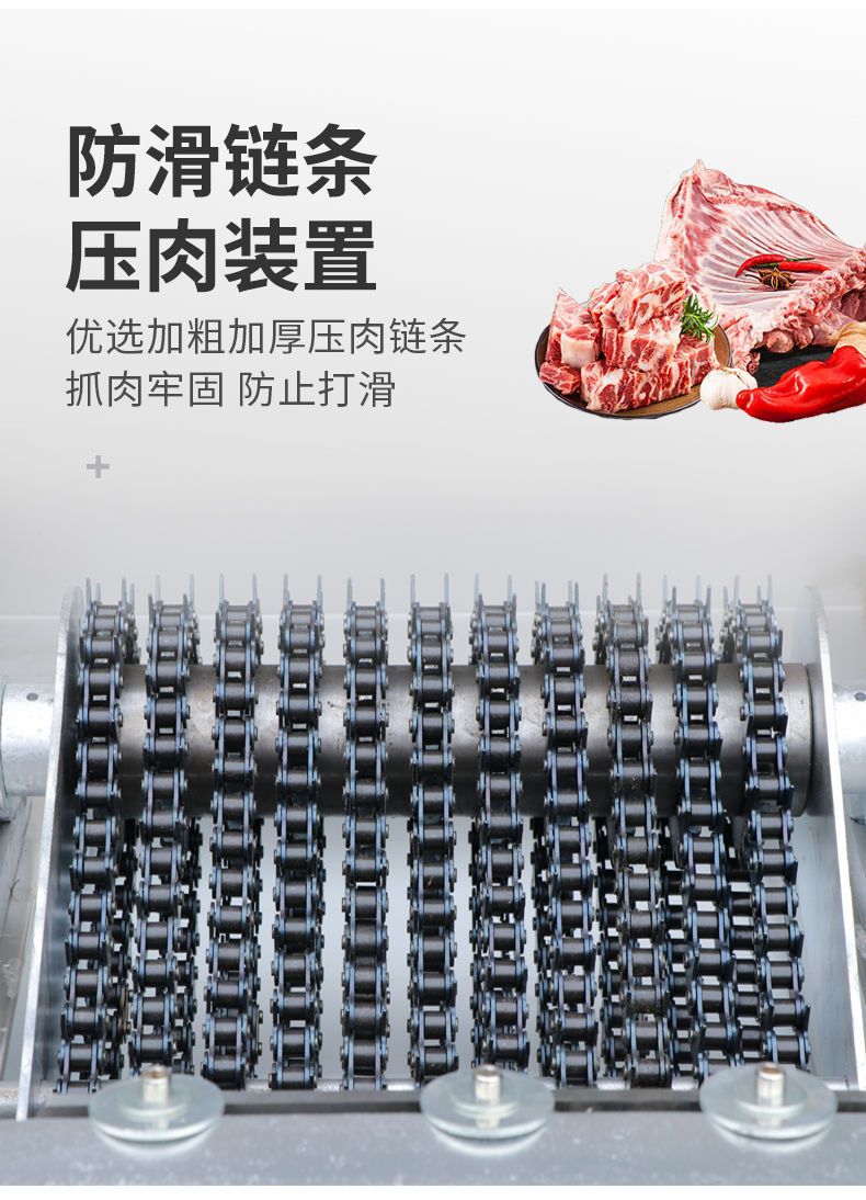• 380V 삼상 전기 모델 - 폭 2.0mm, 치킨 너겟, 돼지 족발 등에 적합합니다.
