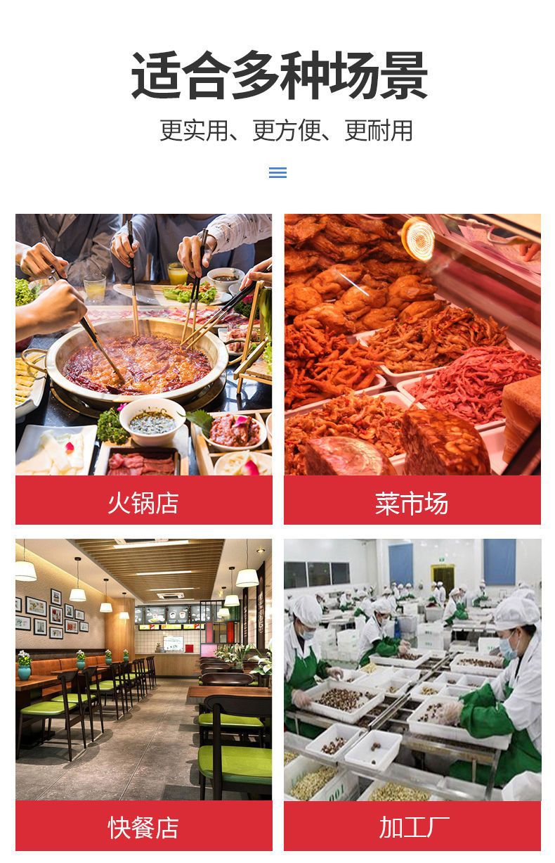 • 220V 2상 전기 모델 - 폭 2.0mm, 치킨 너겟, 돼지 족발 등에 적합합니다.