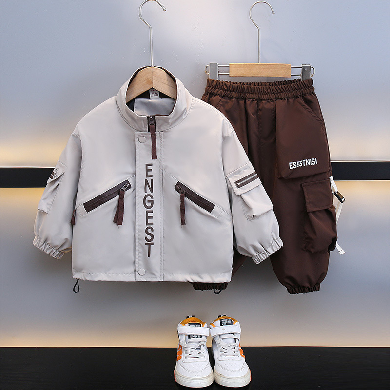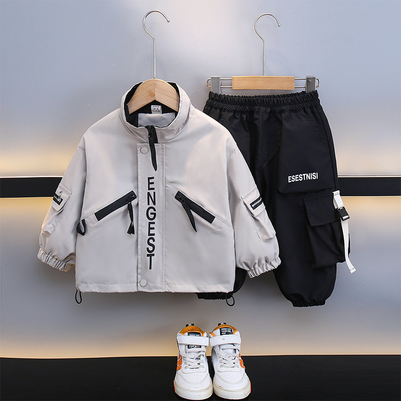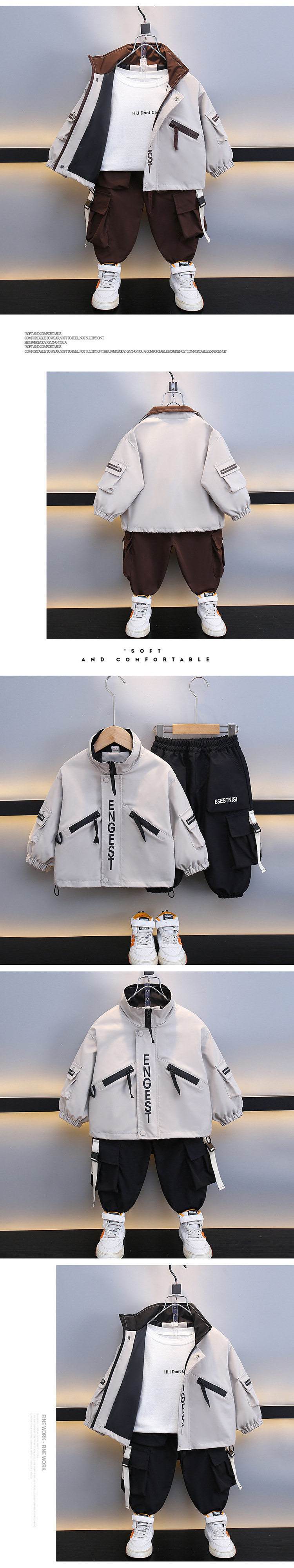 2025 세트 소년 봄 가을 작업복 신형 중소 어린이 쿨 투피스 소년 유행 스포츠 의류스토어 가기