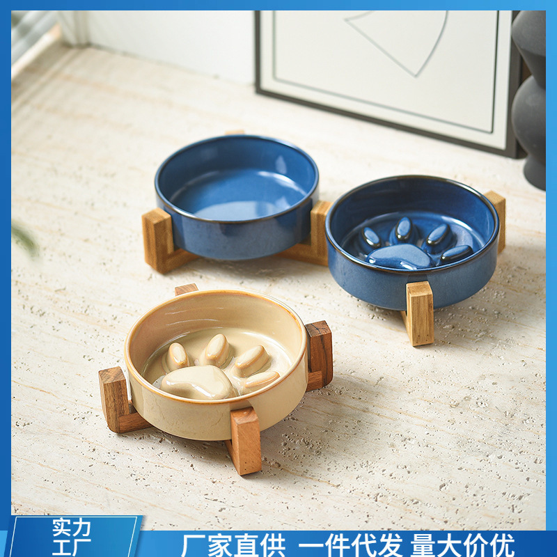✅일본식 가마를 바꾸는 세라믹 애완 동물 고양이 그릇 개 그릇 중간 크기의 강아지 천천히 먹는 그릇 반대로 질식 천천히 먹는 그릇스토어 가기