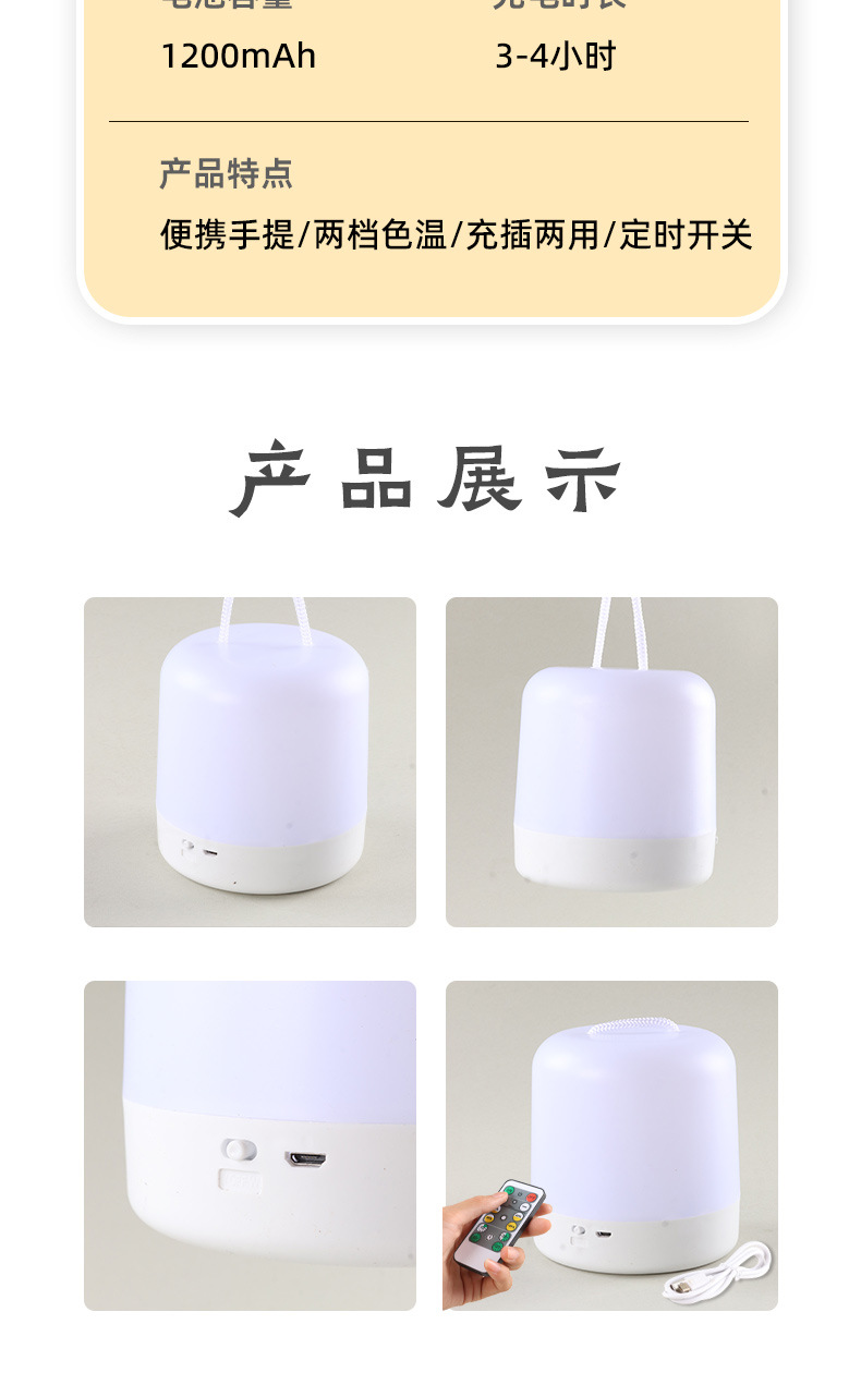 국경 간 휴대용 야간 조명 침대 옆 작은 테이블 램프 원격 제어 야외 캠핑 램프 기숙사 야간 수면 램프 충전스토어 가기