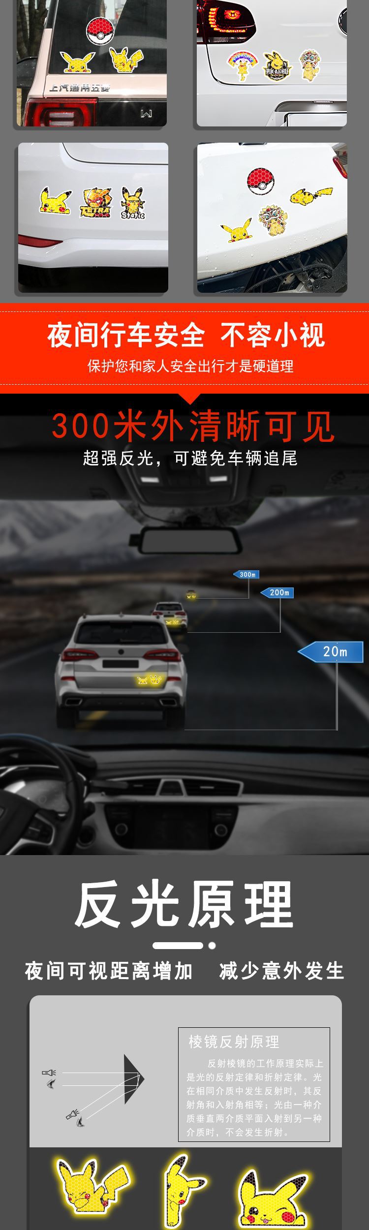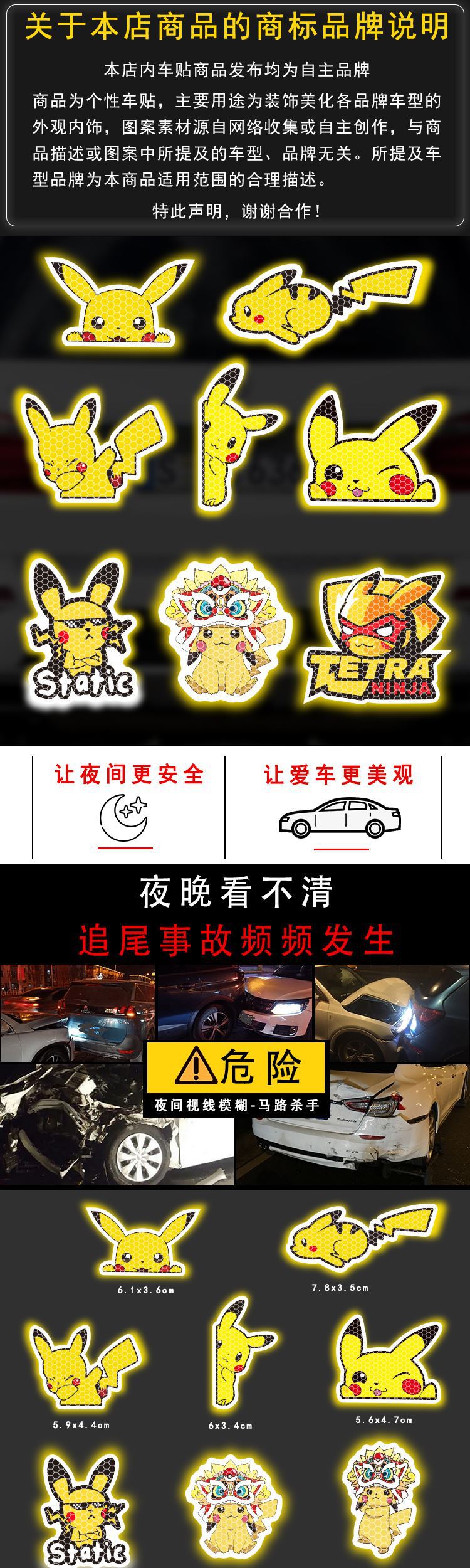 피카추 전기 자동차 반사 경고 스티커 자동차 오토바이 안전 헬멧 장식 자동차 스티커를 덮는 만화 스크래치스토어 가기
