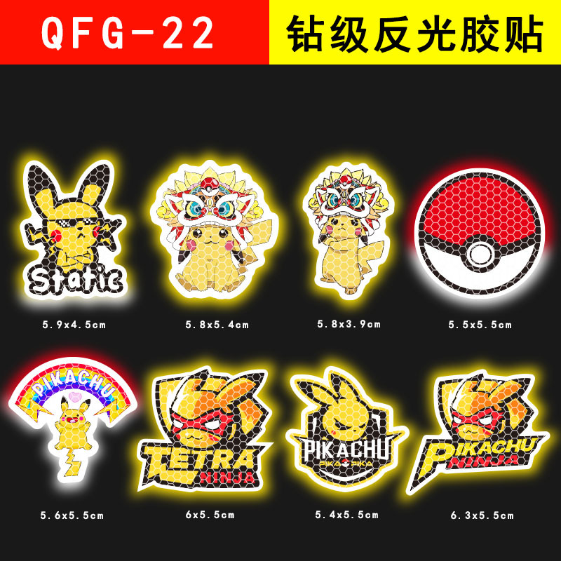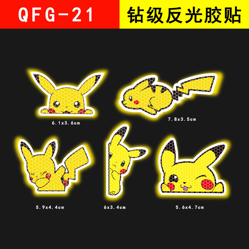 피카추 전기 자동차 반사 경고 스티커 자동차 오토바이 안전 헬멧 장식 자동차 스티커를 덮는 만화 스크래치