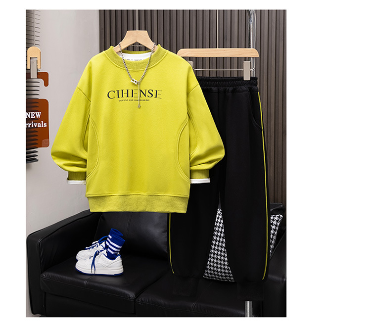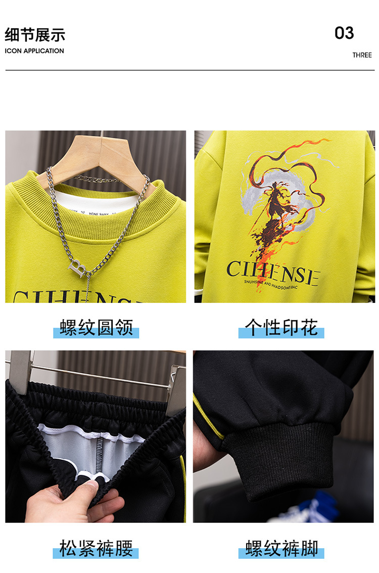 남학생 봄웨어 세트 2025 새로운 어린이 중 · 대형 어린이 트렌디 쿨 캐주얼 운동복 블랙 바지 투피스 세트스토어 가기