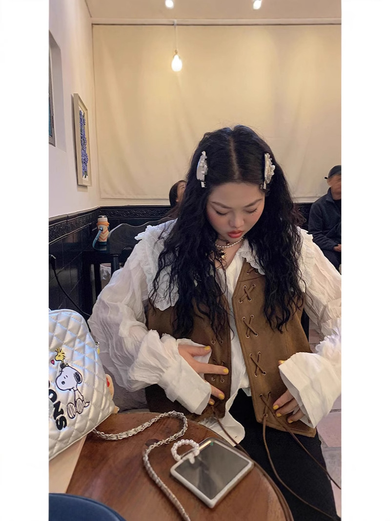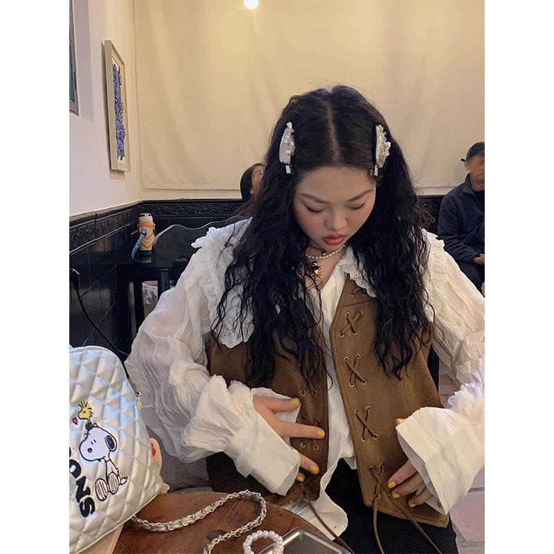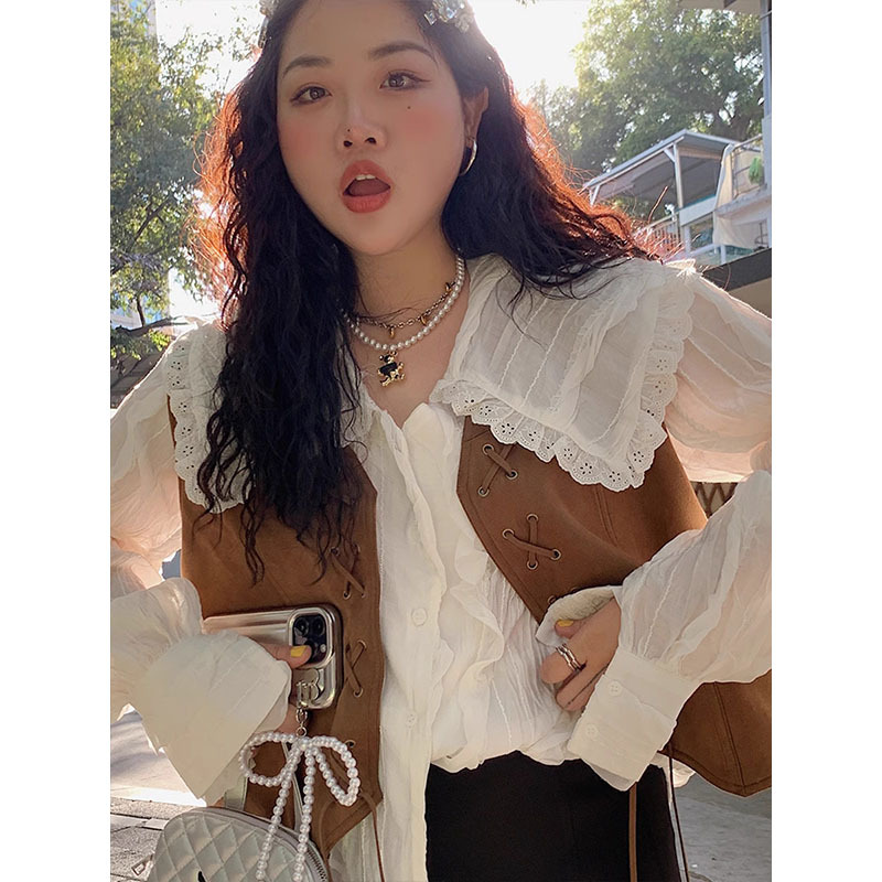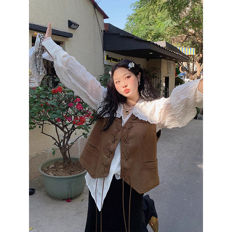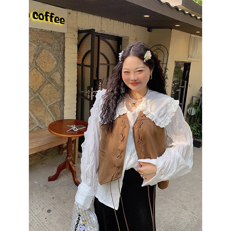 다지 골드 대형 스웨이드 조끼 여성의 봄과 가을 2025 새로운 통통녀 플러스 사이즈 유행 짧은 조끼스토어 가기