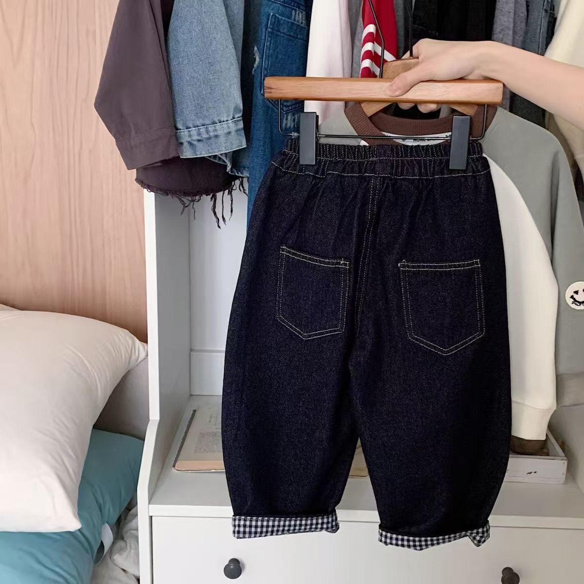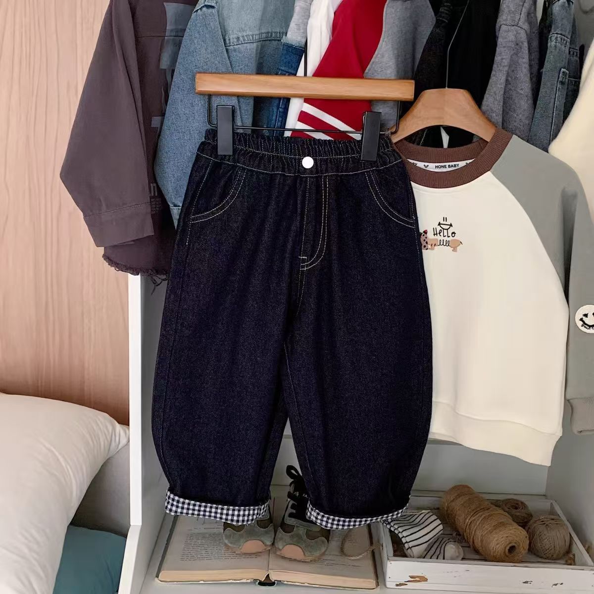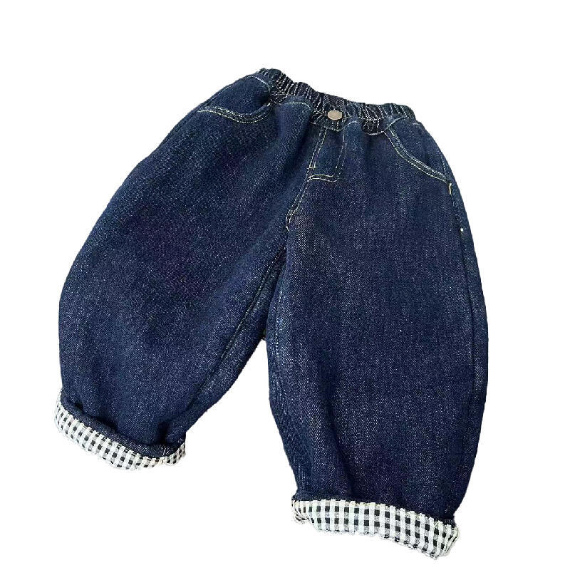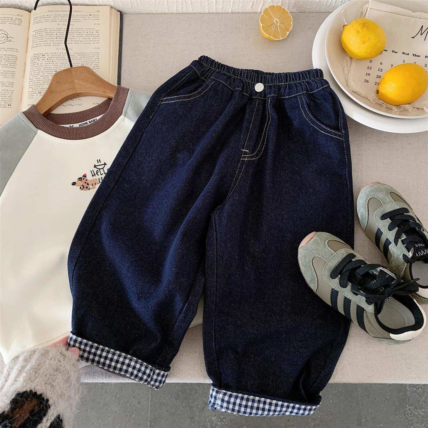 어린이 체크무늬 롤업 데님 팬츠 2025 남아용 스트레이트 팬츠 여아용 캐주얼 다용도 바지 유아용스토어 가기