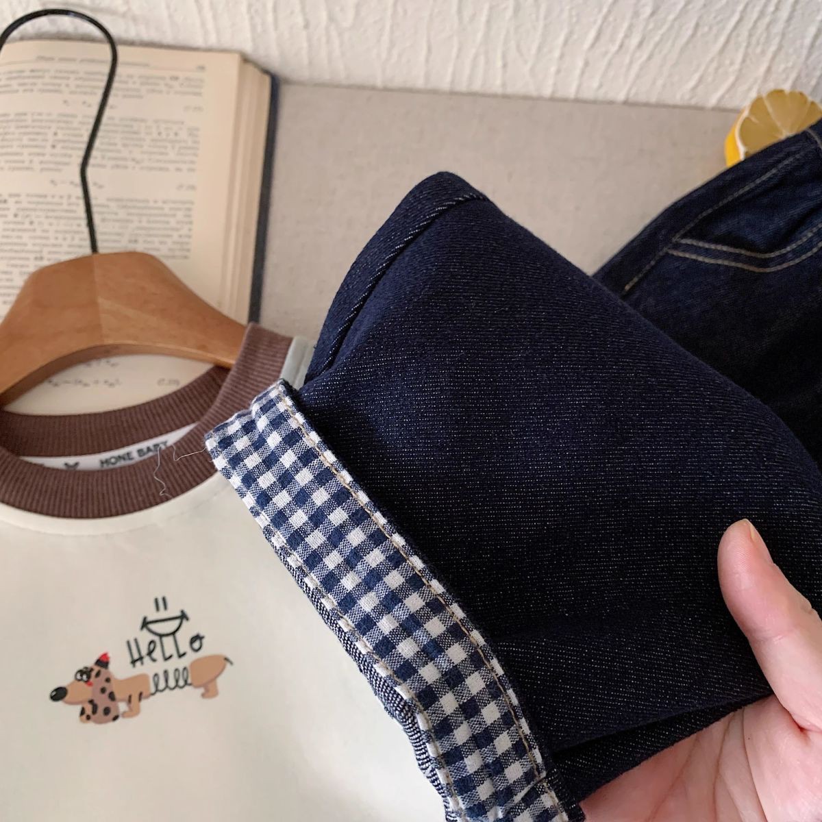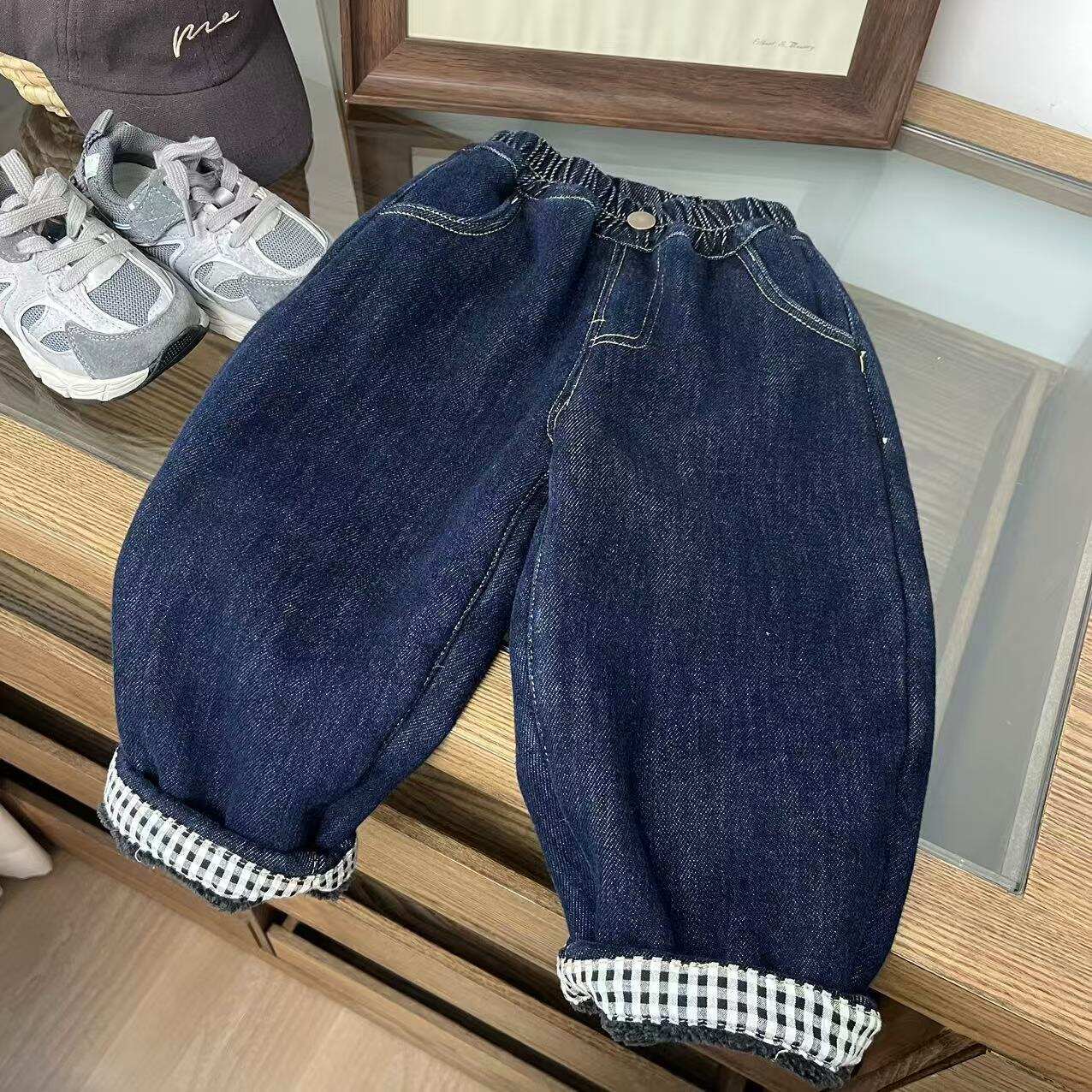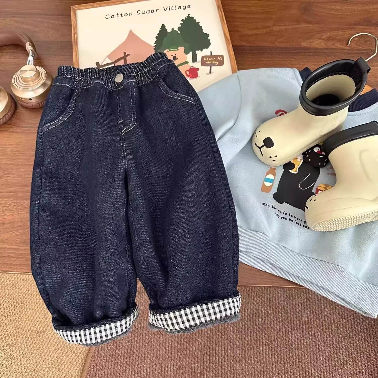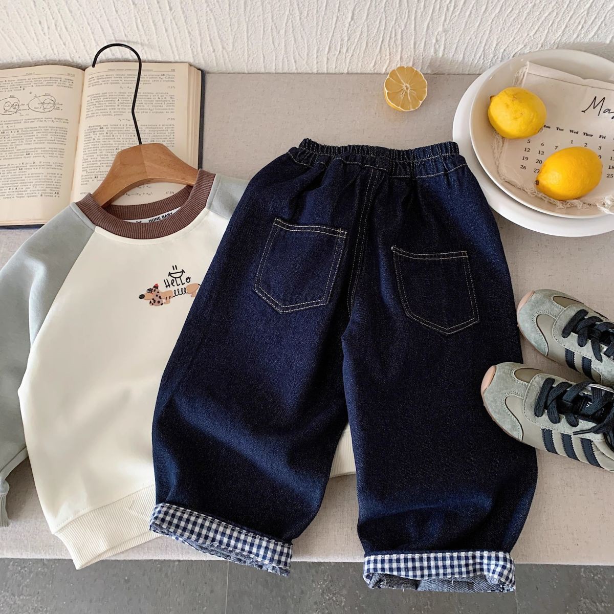 어린이 체크무늬 롤업 데님 팬츠 2025 남아용 스트레이트 팬츠 여아용 캐주얼 다용도 바지 유아용스토어 가기