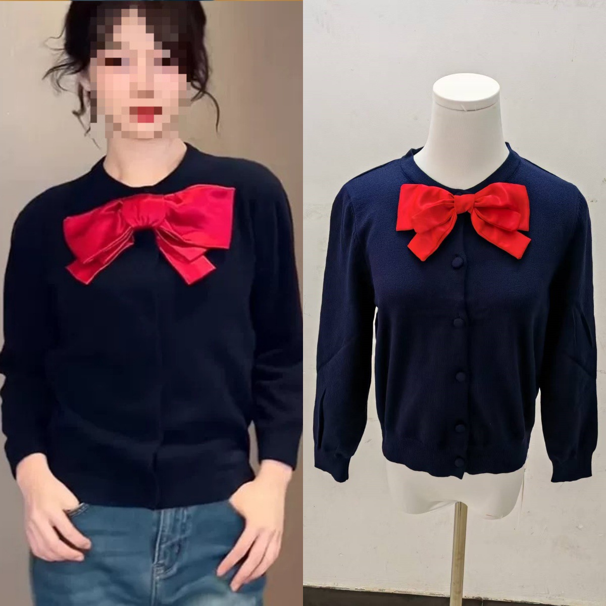 장기 재고 2025 가을 양쯔색 리본 니트 여성 라운드넥 컬리지 스타일 다용도 상의스토어 가기