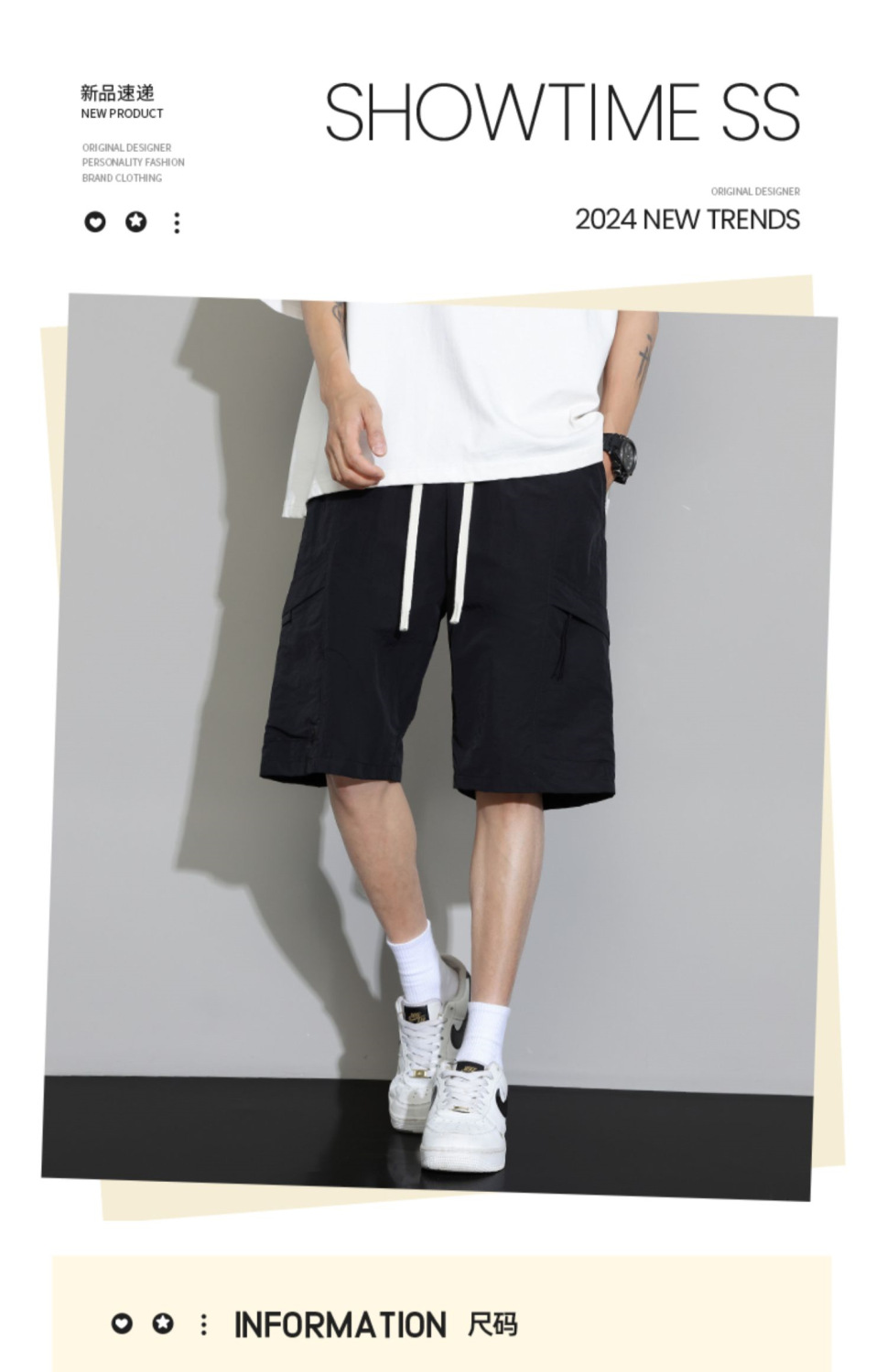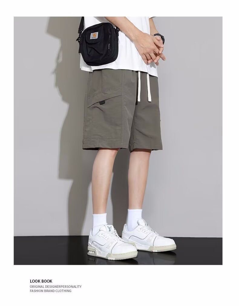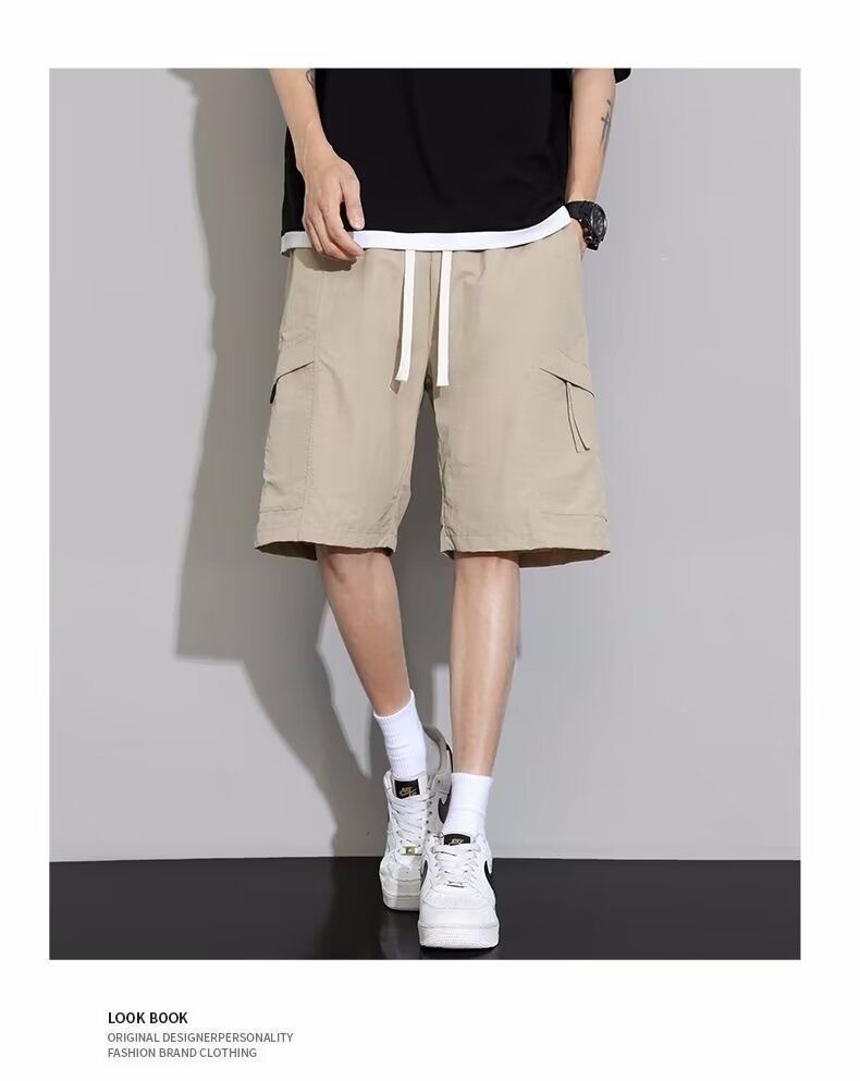 얇은 작업 반바지 남성 여름 느슨한 캐주얼 5 점 바지 유행 브랜드 아이스 실크 빠른 건조 비치 바지 스포츠 바지스토어 가기