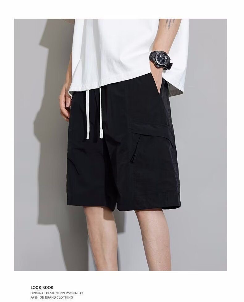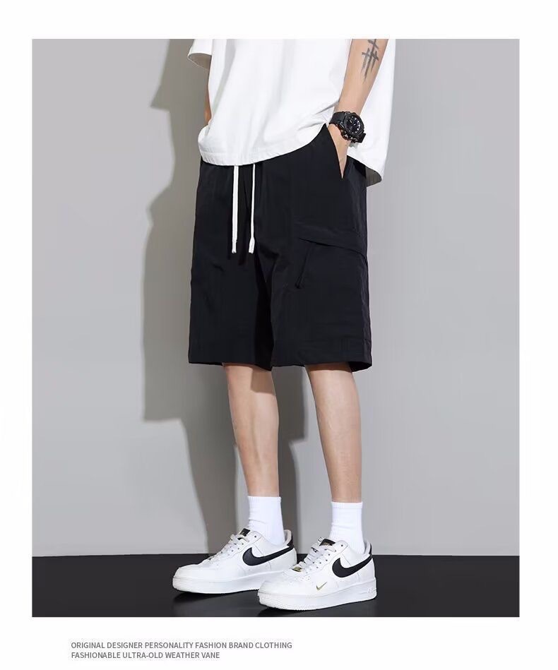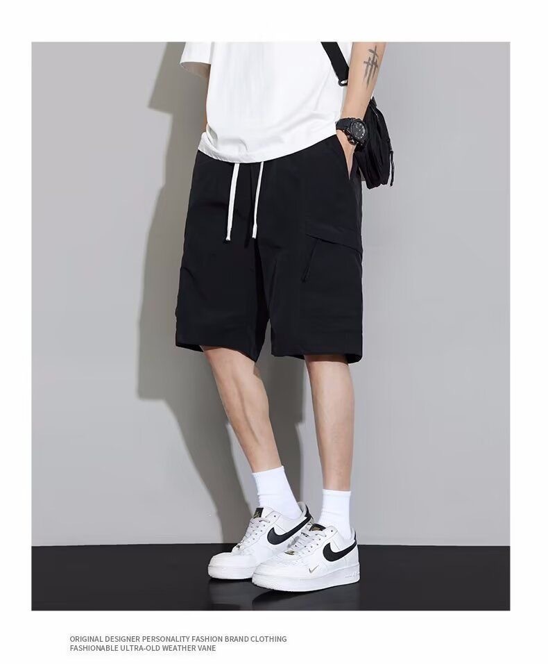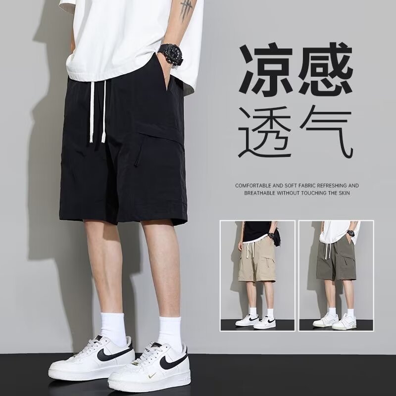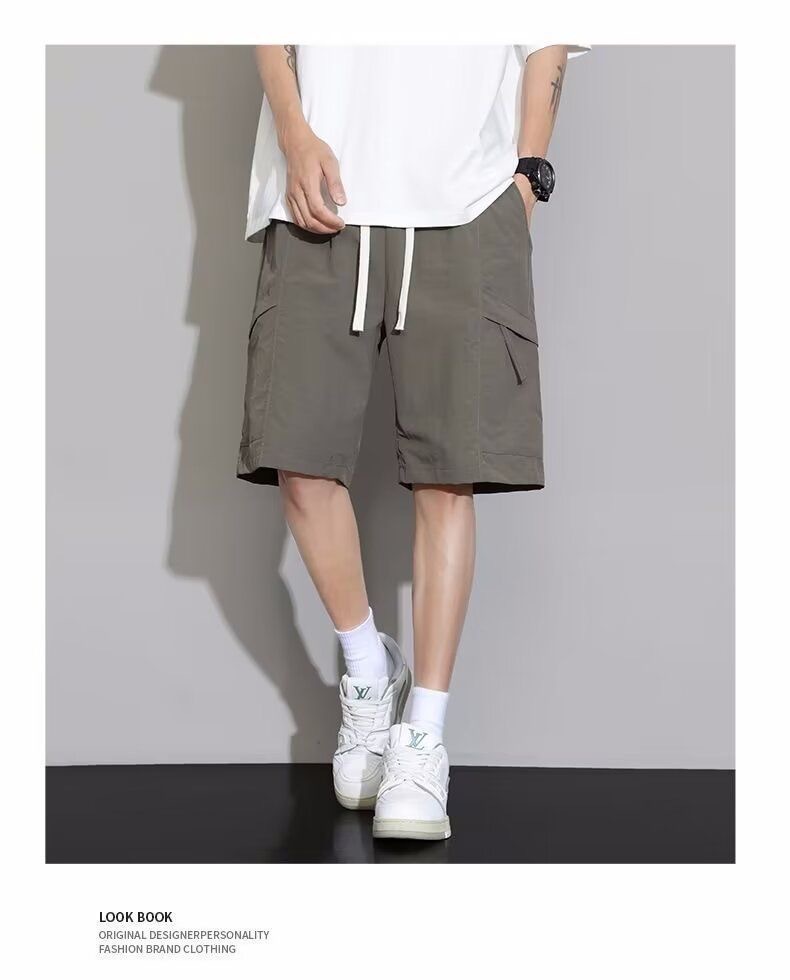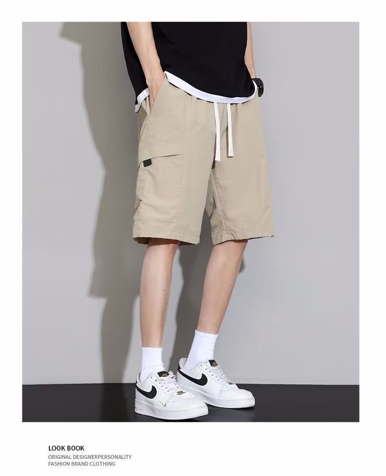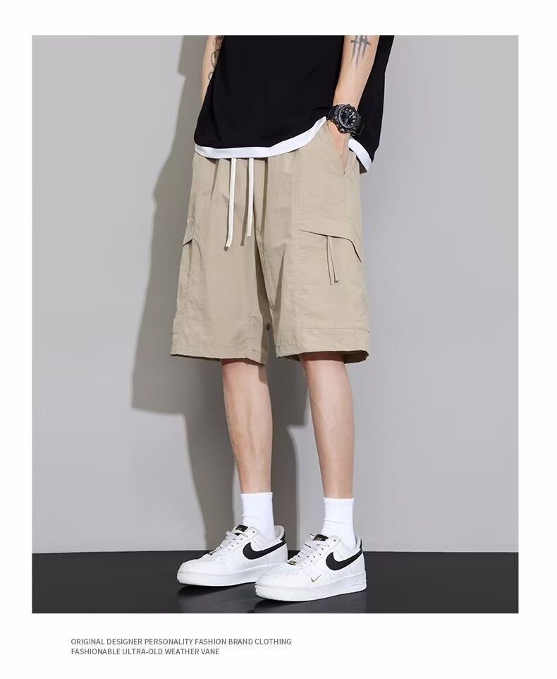 얇은 작업 반바지 남성 여름 느슨한 캐주얼 5 점 바지 유행 브랜드 아이스 실크 빠른 건조 비치 바지 스포츠 바지
