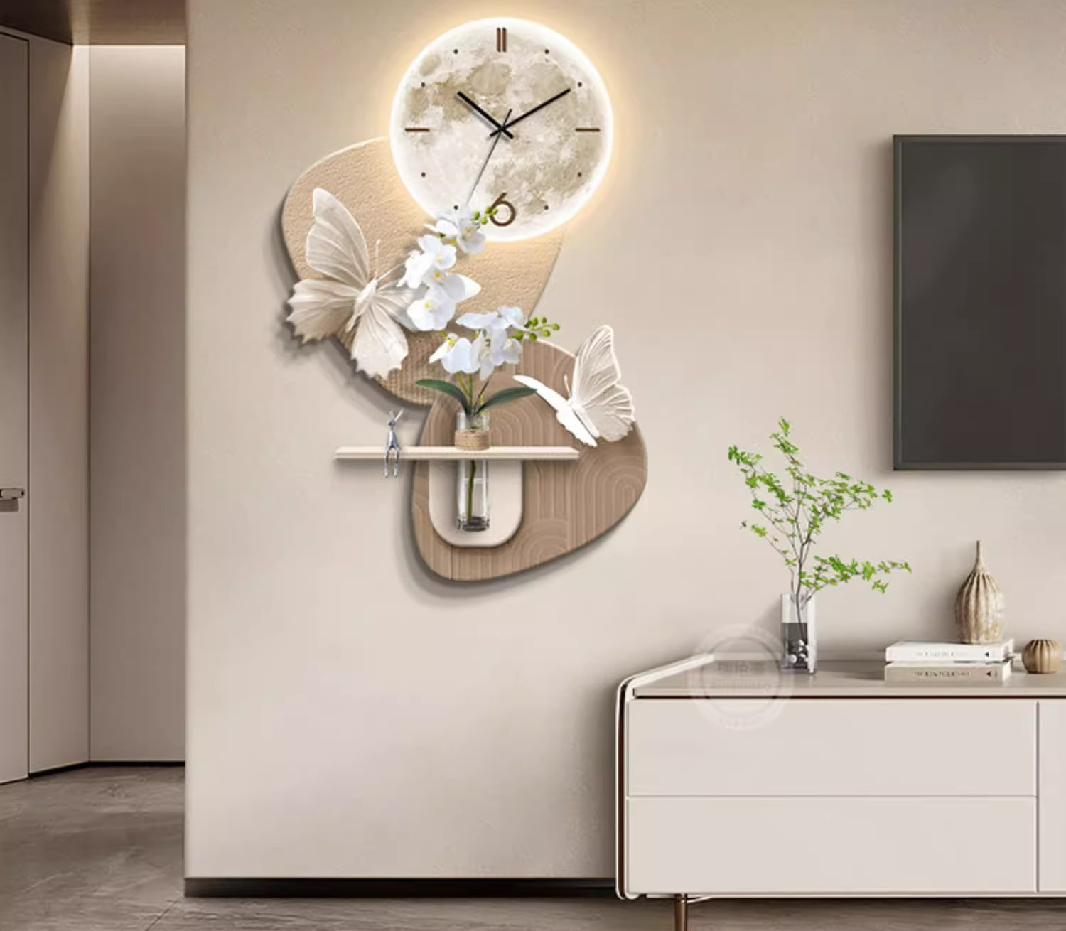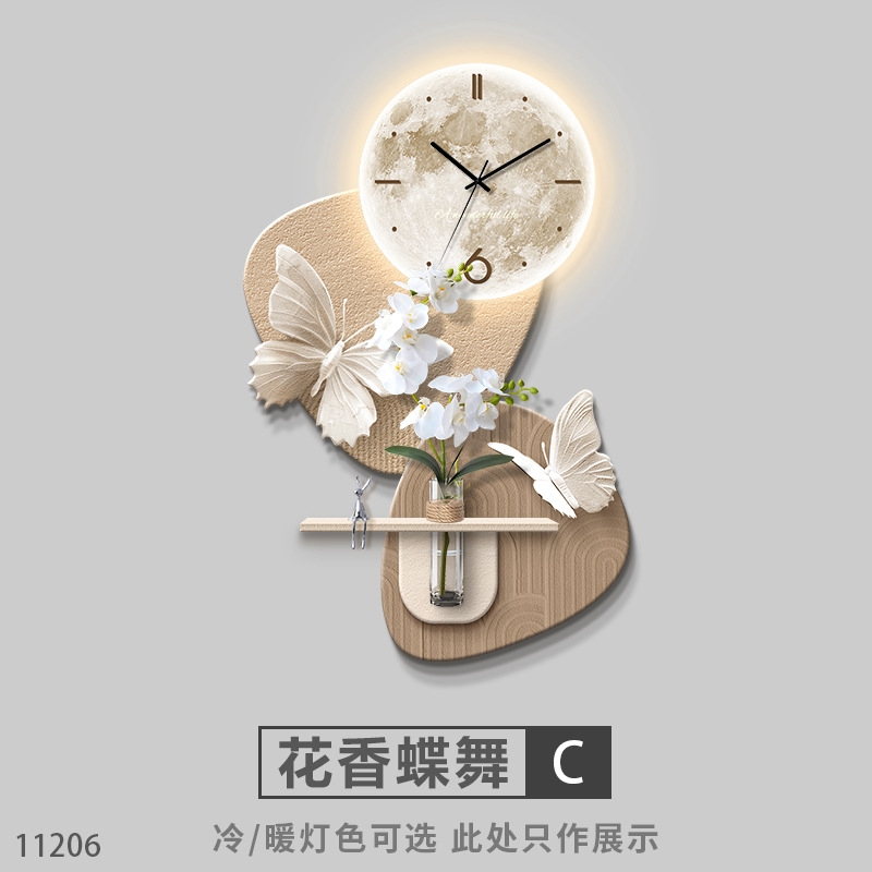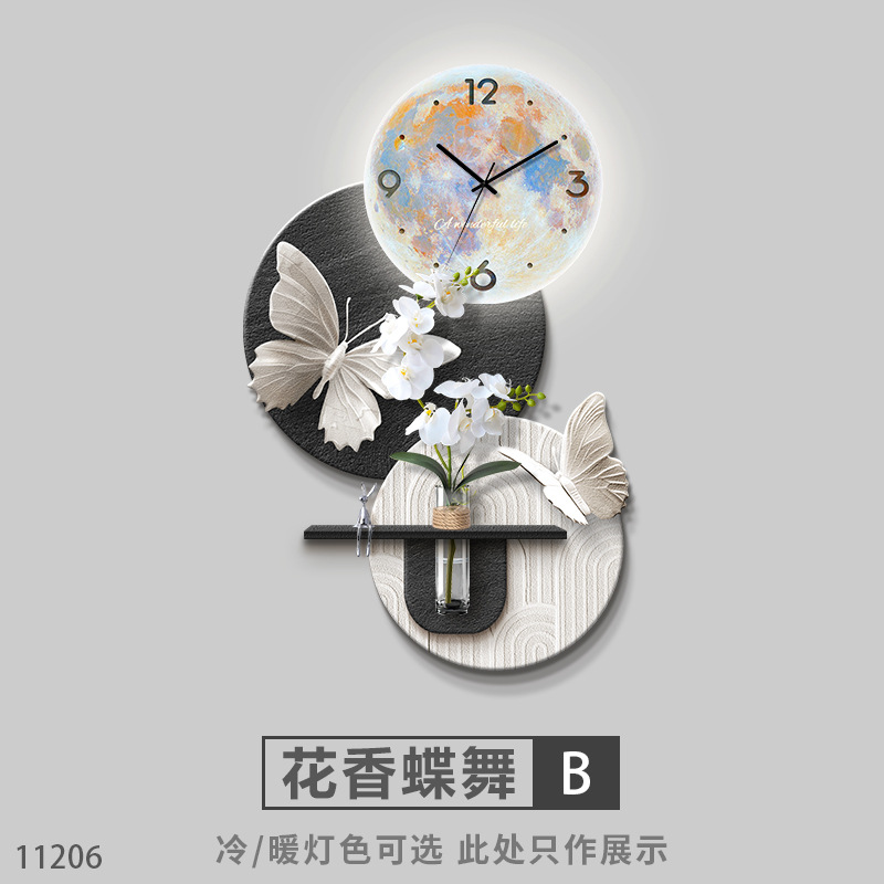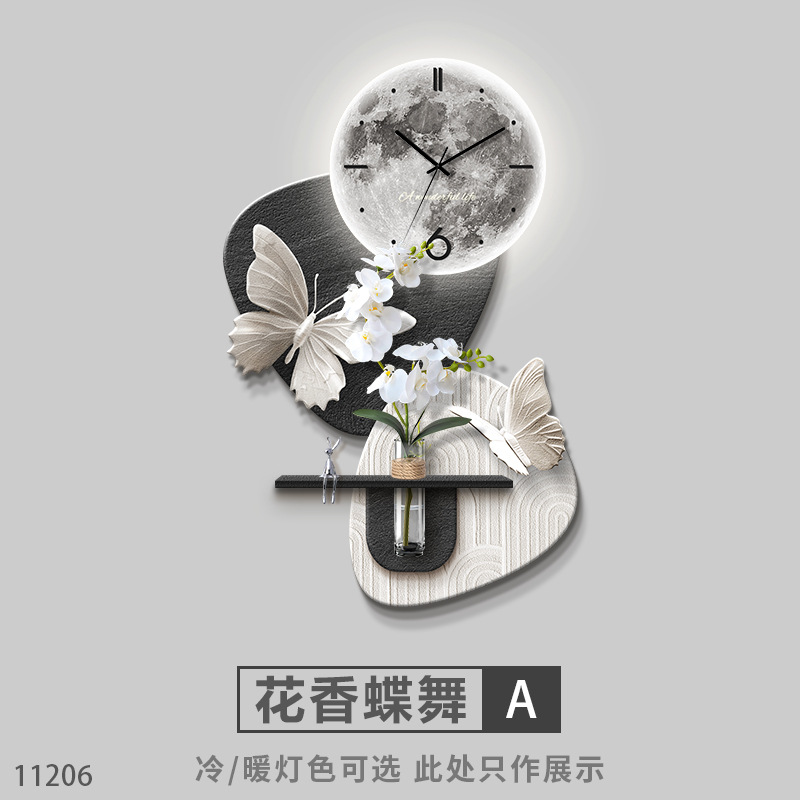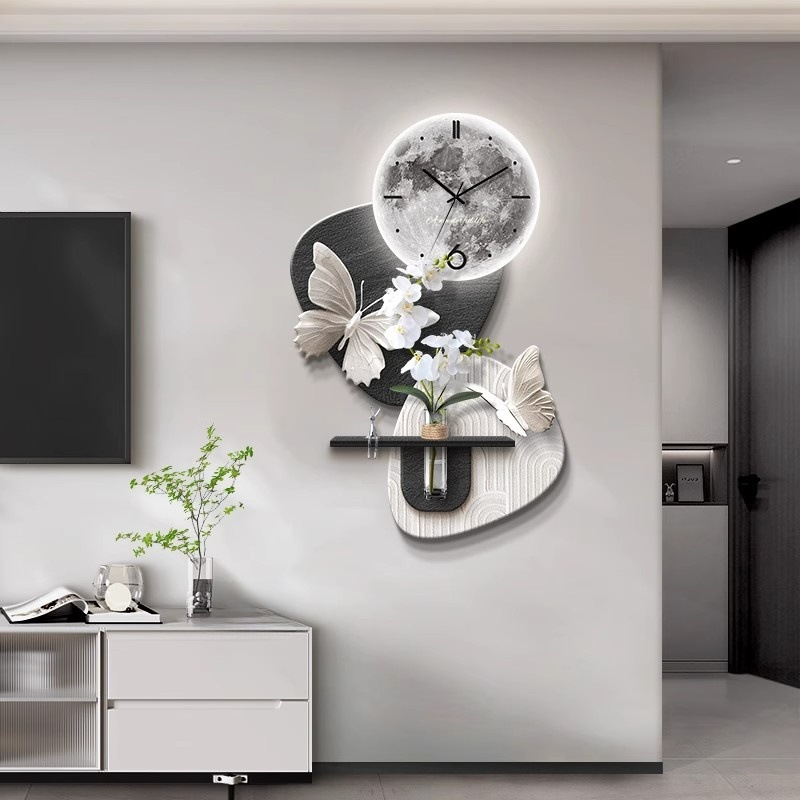 수경 녹색 심기 TV 배경 벽 장식 시간 시계 그릴 거실 교수형 그림 큰 흰색 벽 창조적 인 펜던트 벽 램프스토어 가기