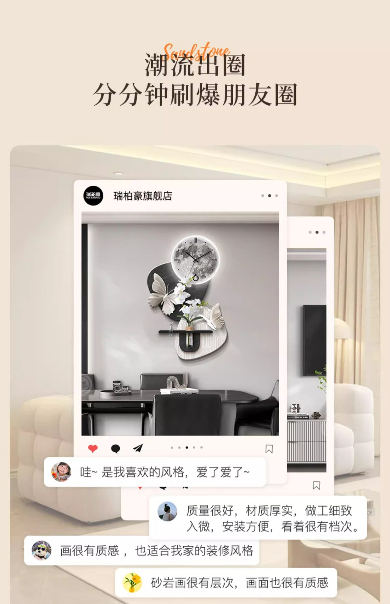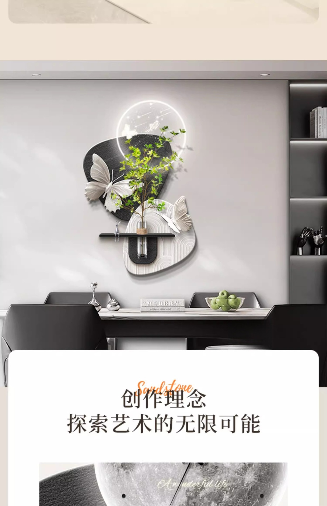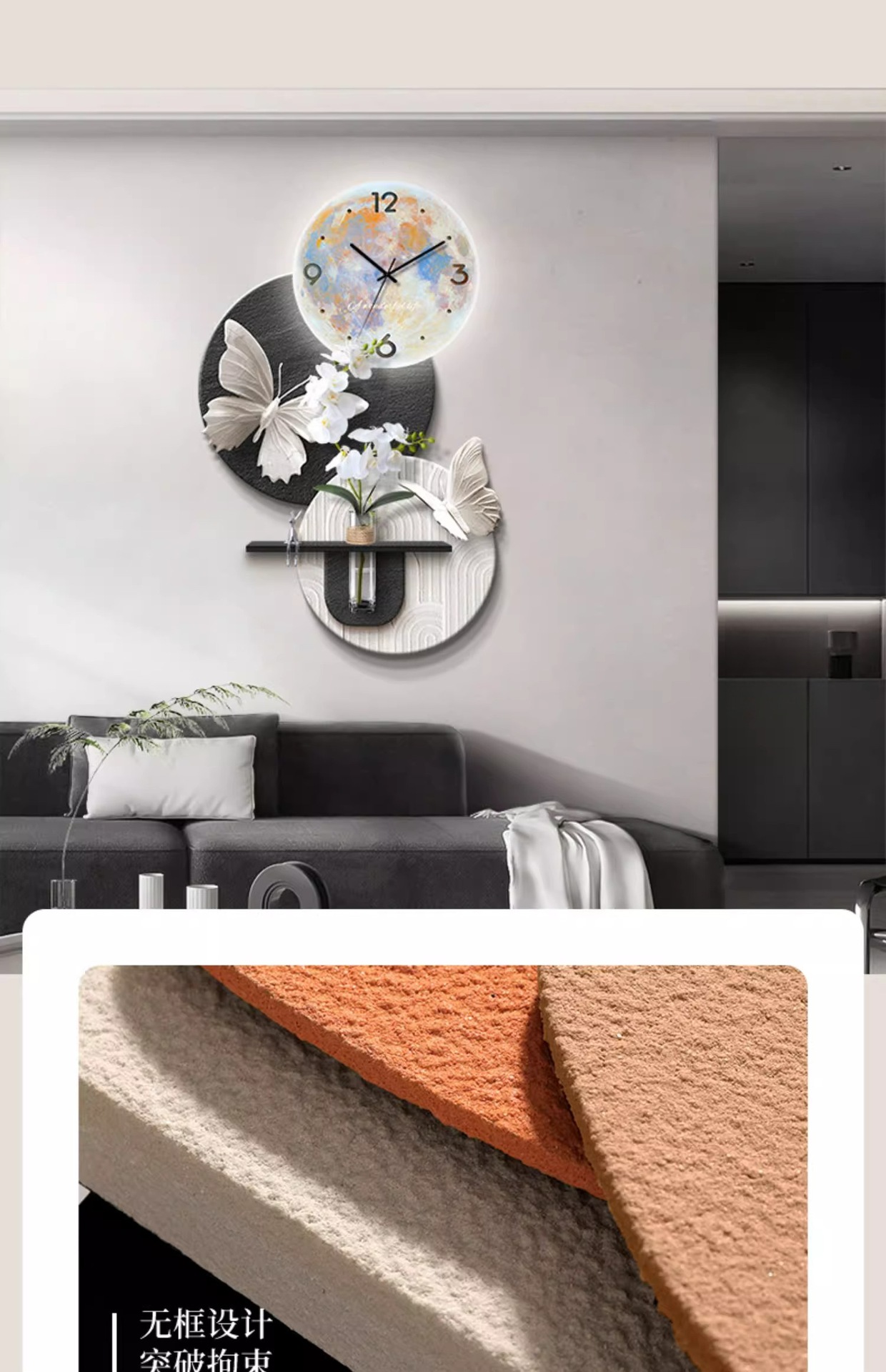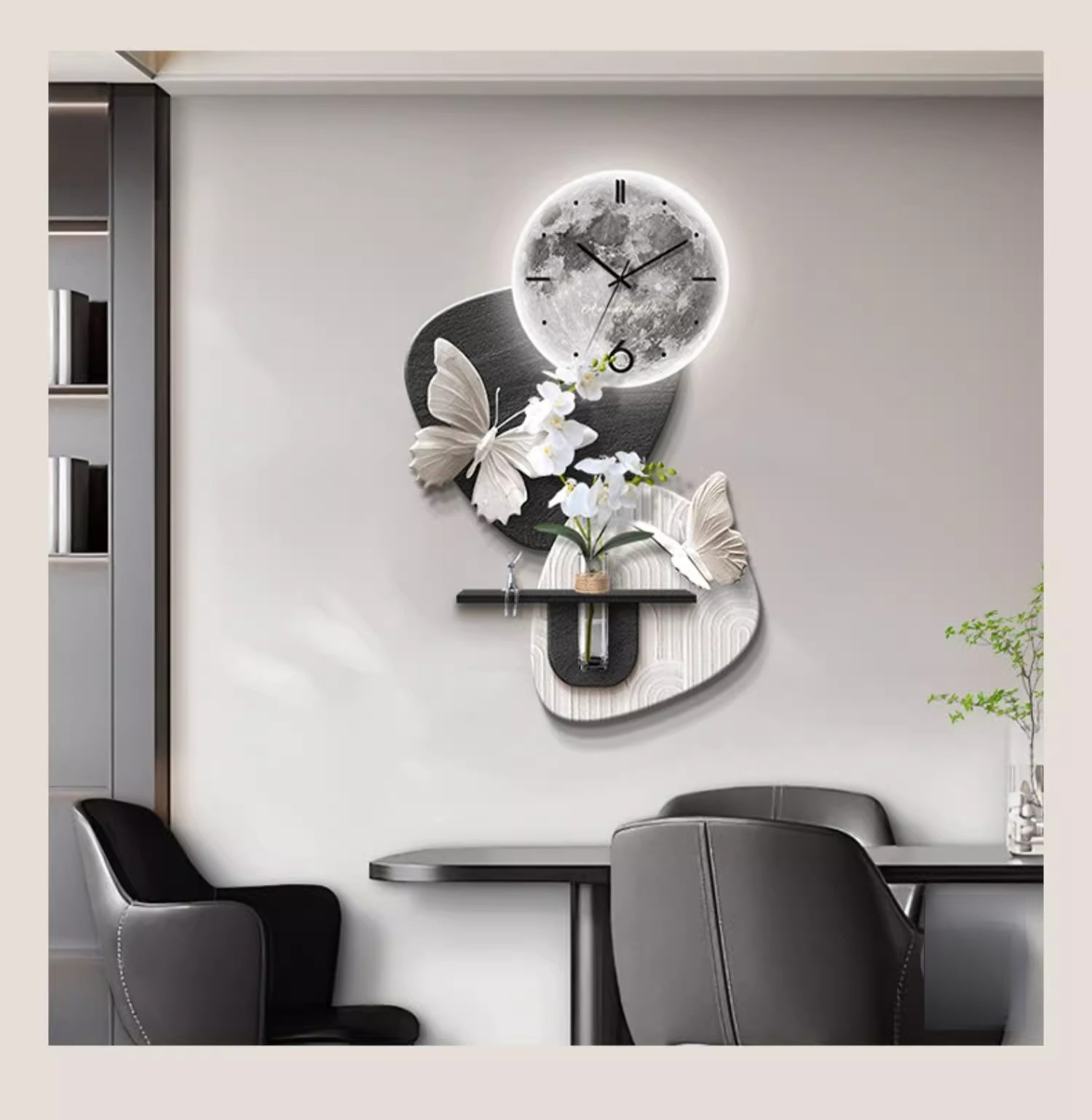 수경 녹색 심기 TV 배경 벽 장식 시간 시계 그릴 거실 교수형 그림 큰 흰색 벽 창조적 인 펜던트 벽 램프스토어 가기
