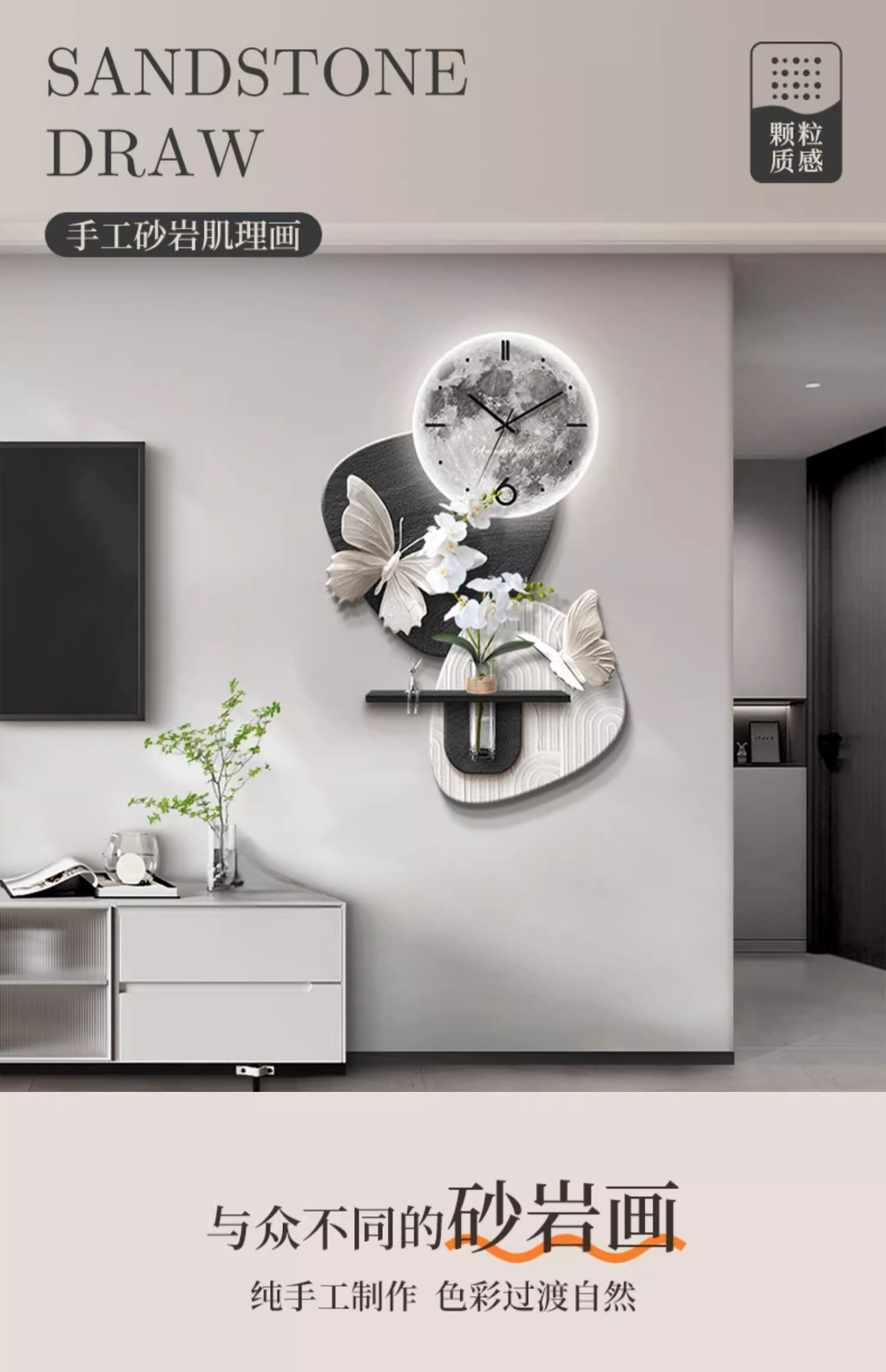 수경 녹색 심기 TV 배경 벽 장식 시간 시계 그릴 거실 교수형 그림 큰 흰색 벽 창조적 인 펜던트 벽 램프