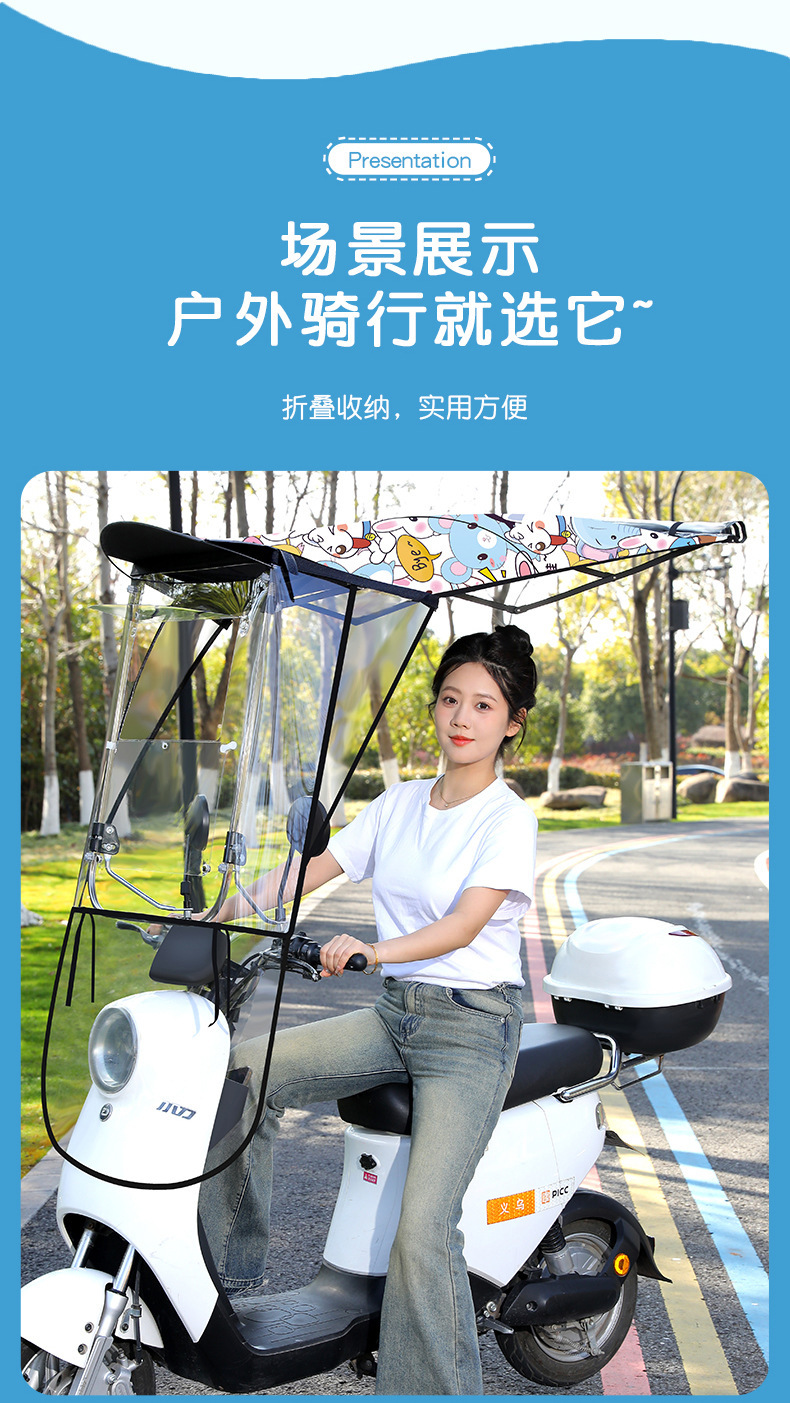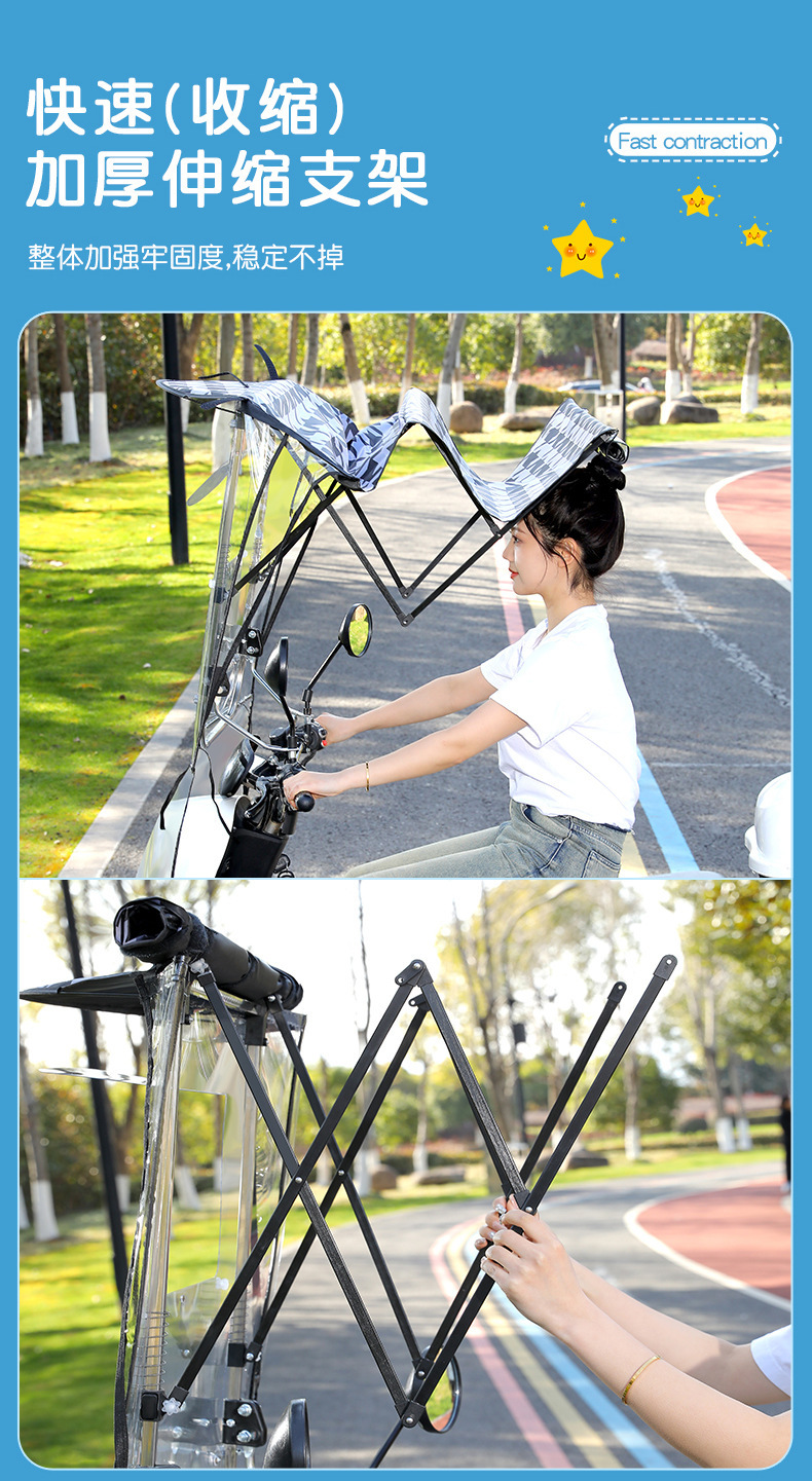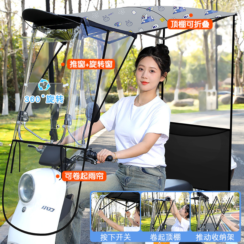 접이식 배터리 자동차 캐노피 새로운 오토바이 앞 유리 개폐식 캐노피 전기 자동차 태양 보호 우산
