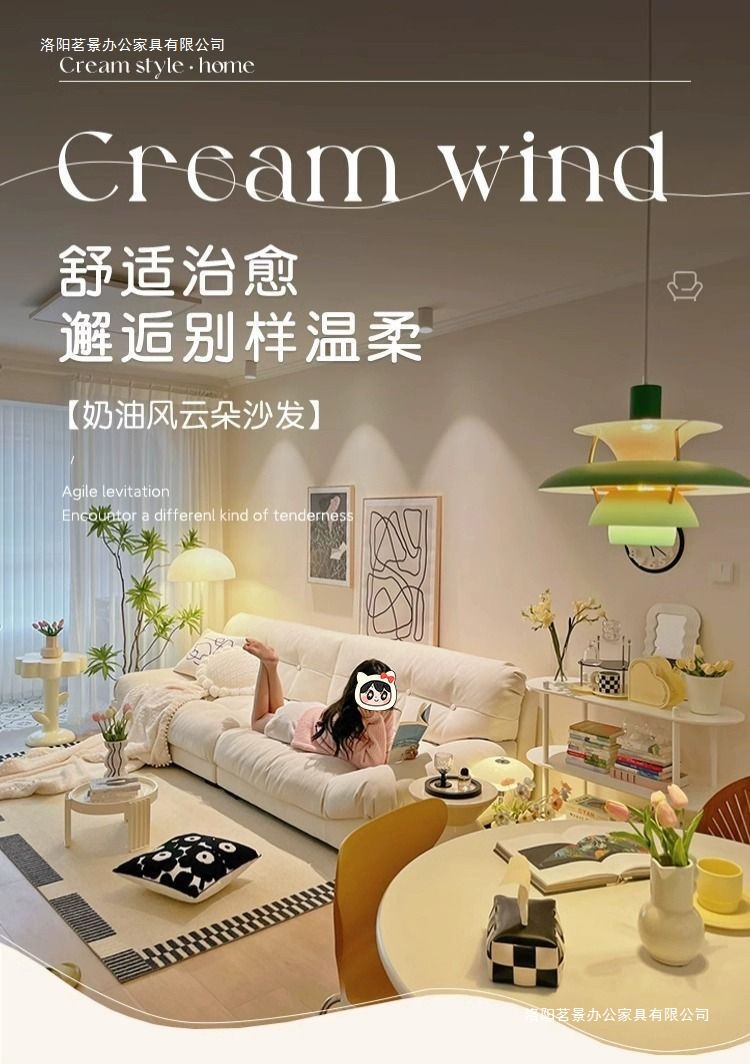 클라우드 소파 새로운 현대 간단한 크림 스타일 거실 작은 아파트 스트레이트 로우 더블 3 인승 게으른 패브릭 소파스토어 가기