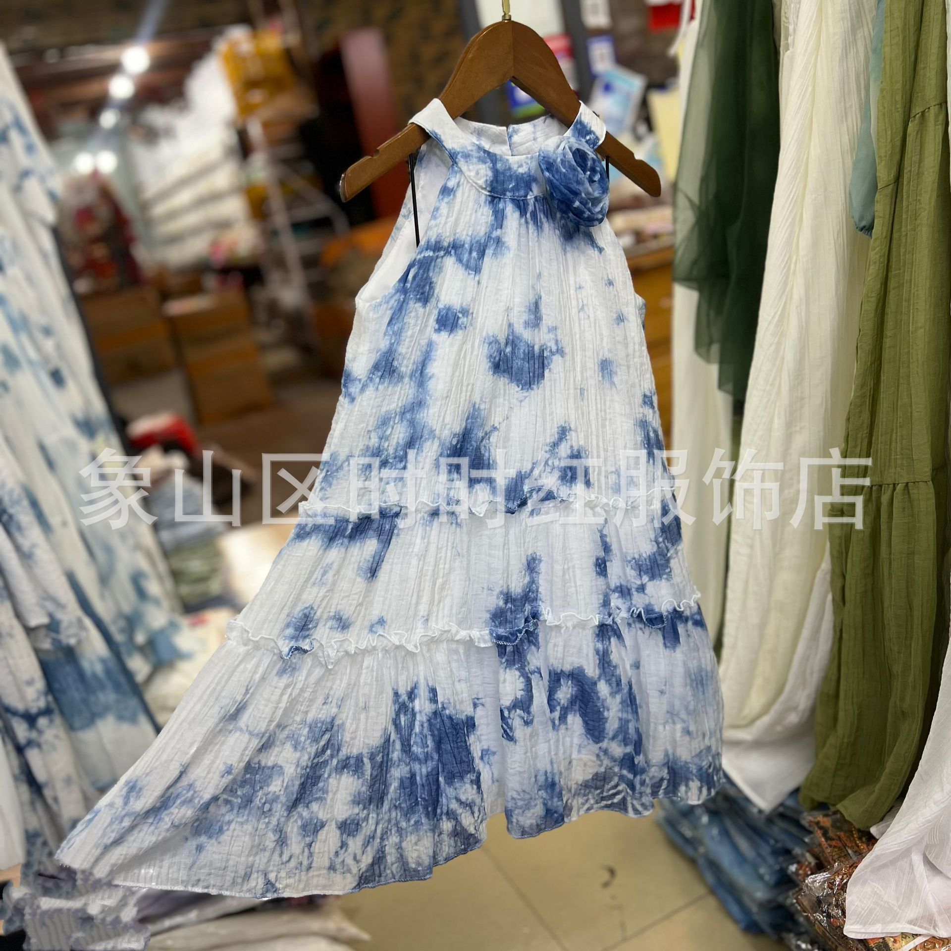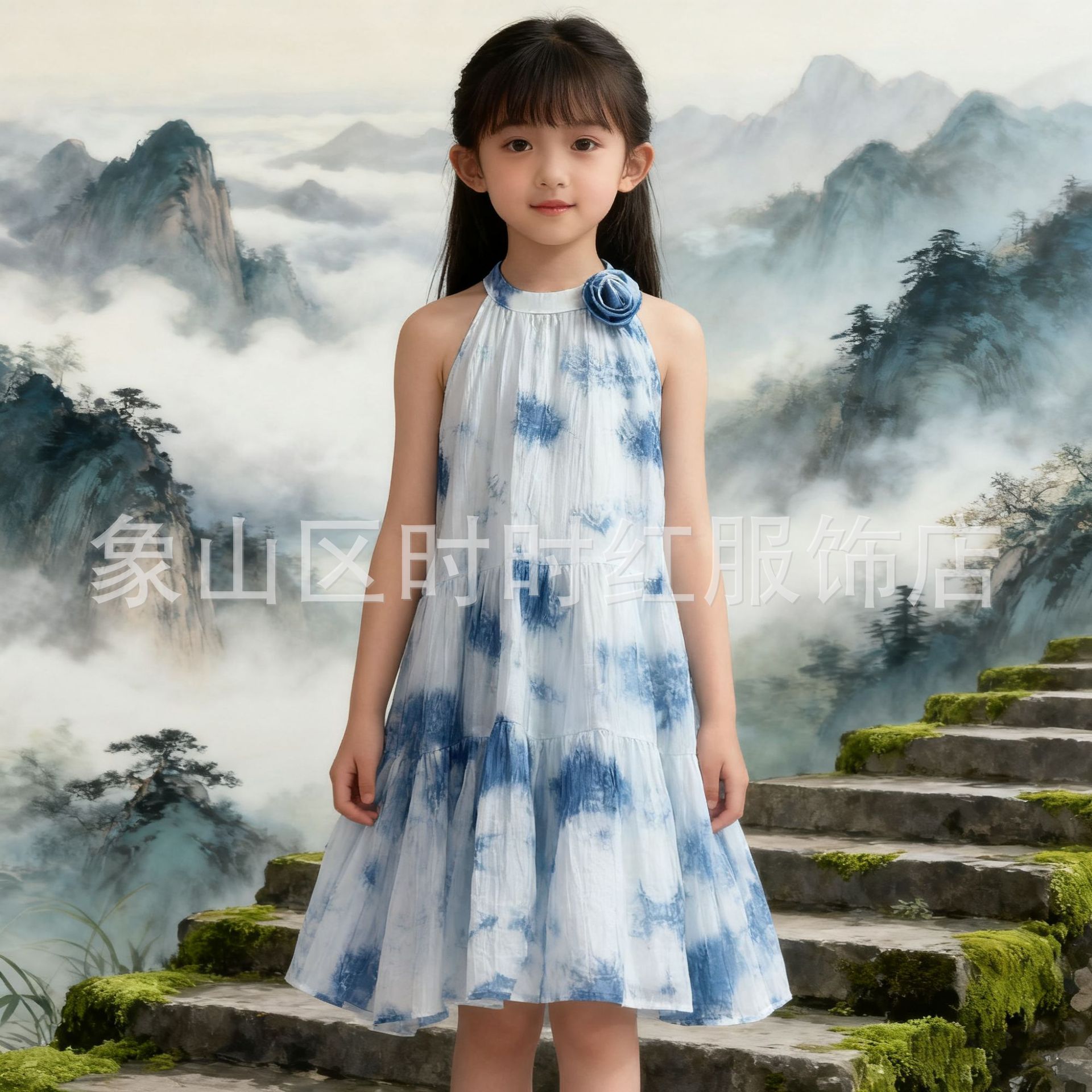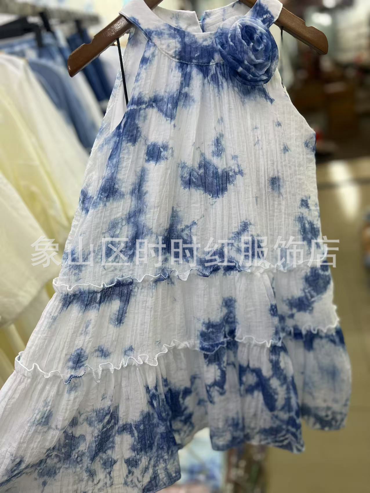 넥타이 염색 소녀의 원피스 2025 새로운 스타일 얇은 부드러운 넥타이 염색 스트랩 비치 원피스 서양식 캐주얼 홀리데이 여름 슬링 스커트스토어 가기