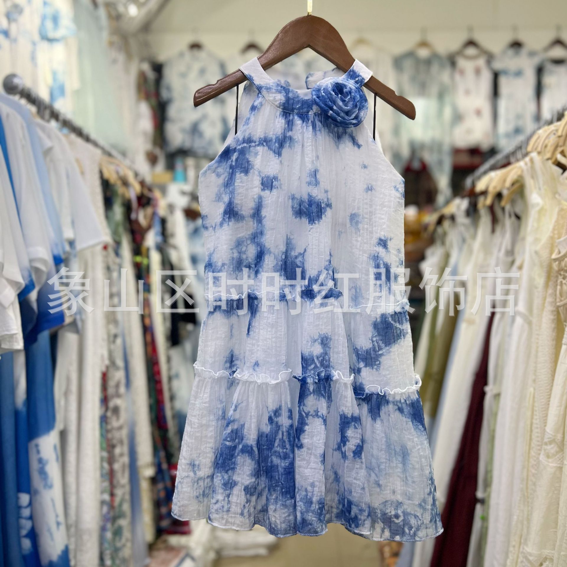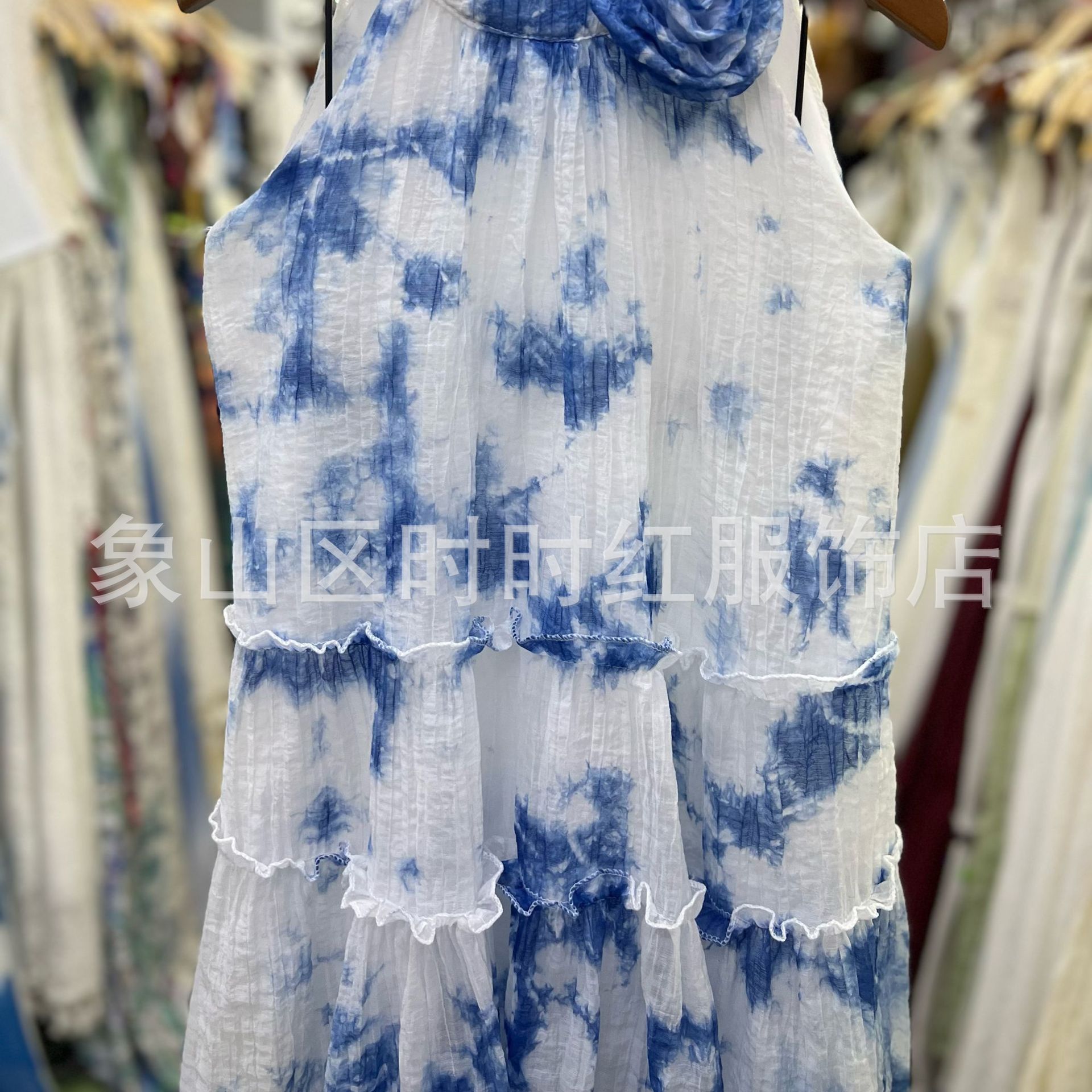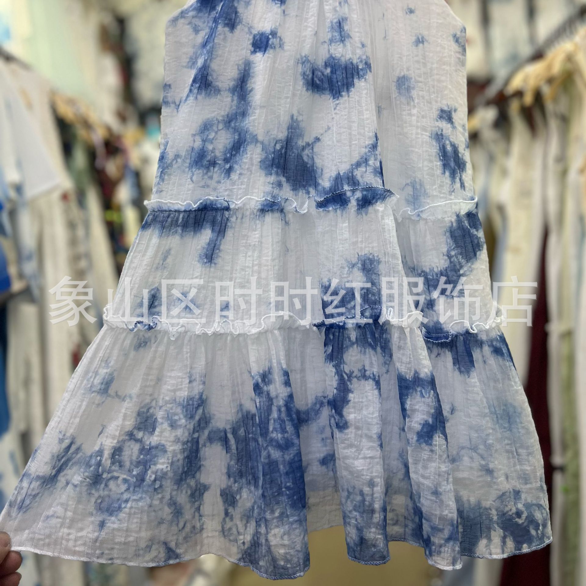 넥타이 염색 소녀의 원피스 2025 새로운 스타일 얇은 부드러운 넥타이 염색 스트랩 비치 원피스 서양식 캐주얼 홀리데이 여름 슬링 스커트스토어 가기