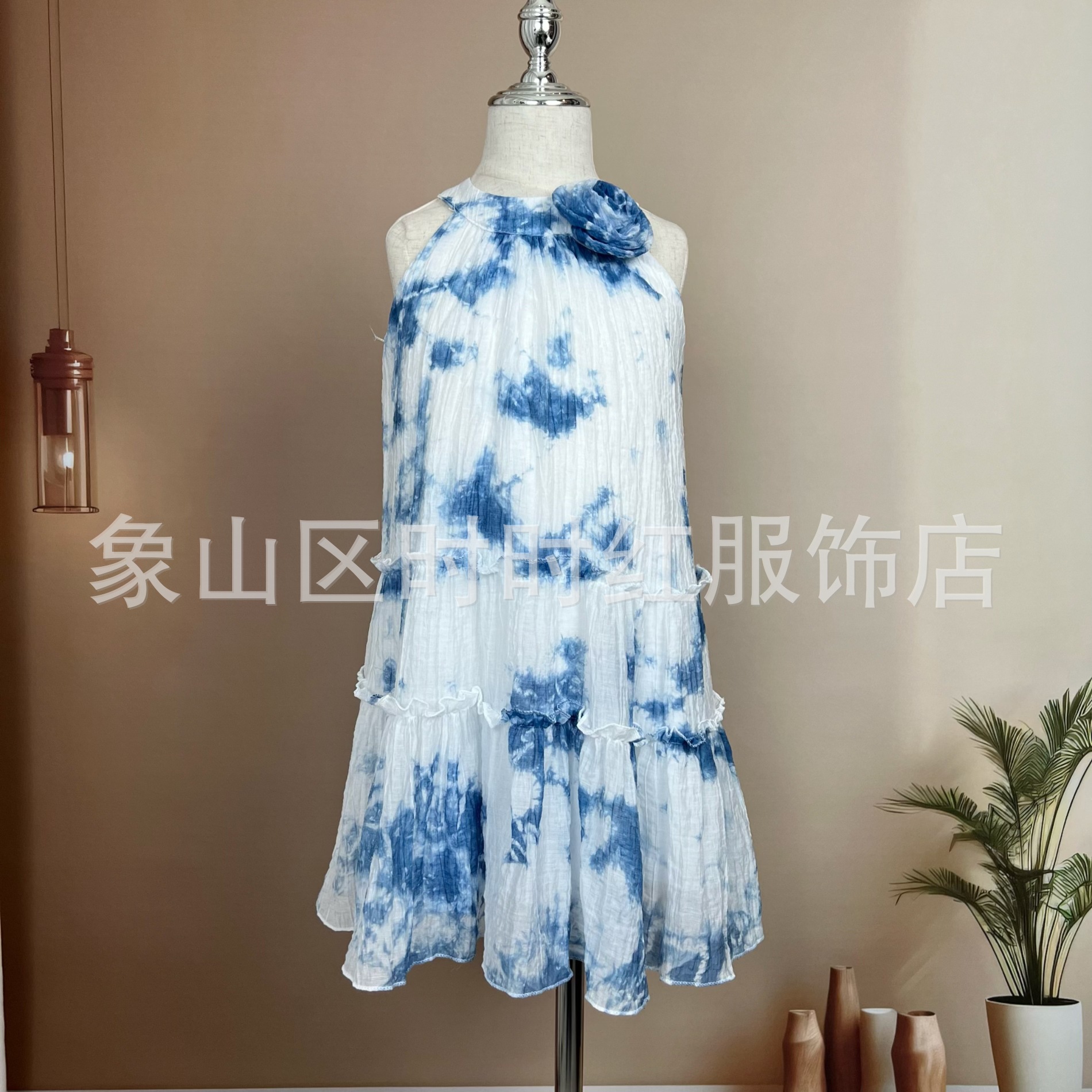 넥타이 염색 소녀의 원피스 2025 새로운 스타일 얇은 부드러운 넥타이 염색 스트랩 비치 원피스 서양식 캐주얼 홀리데이 여름 슬링 스커트