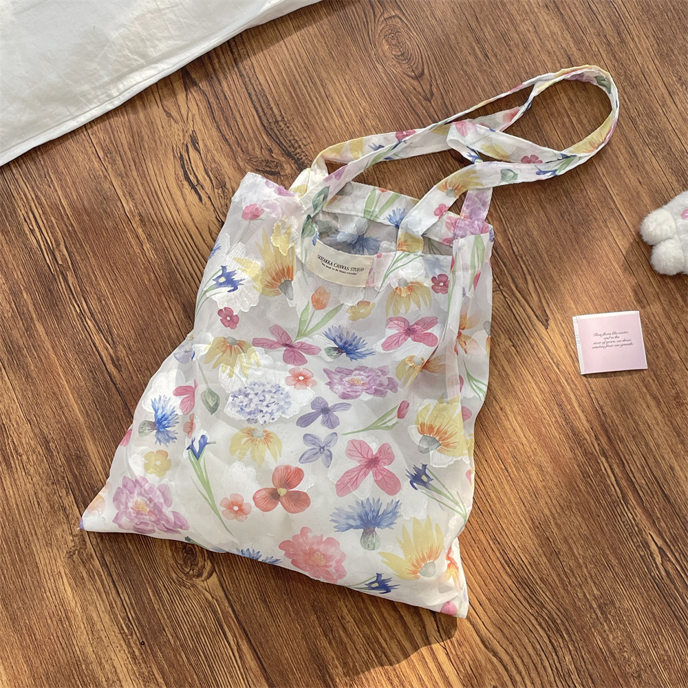 봄과 여름 5381 새로운 스타일 메쉬 꽃 어깨 가방 얇은 요정 손 가방 대용량 휴가 가방