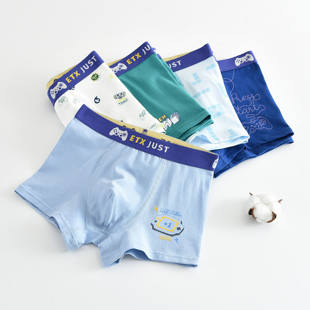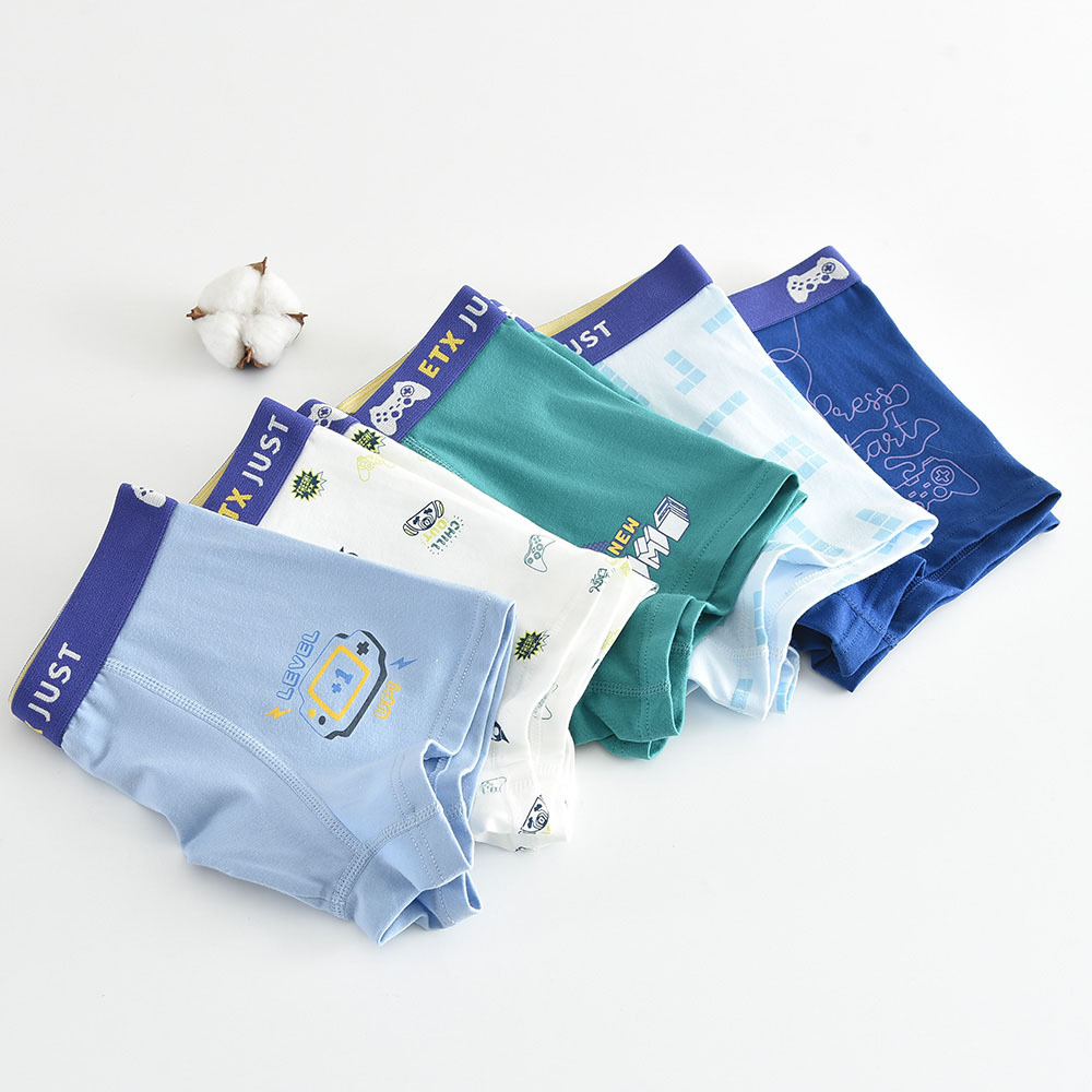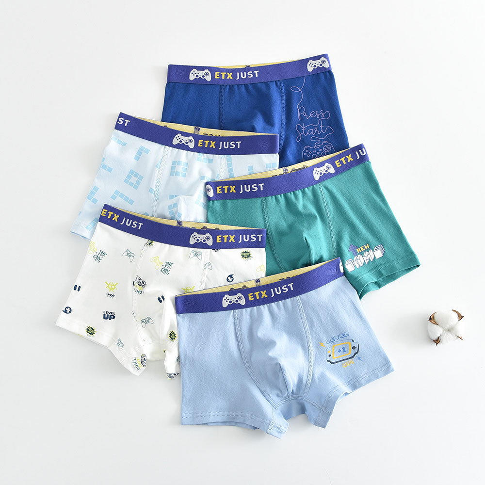5 팩 ETX 어린이 속옷 소년 콤비드 코튼 반바지 대형 어린이 4 코너 바지 10 대 학생 복서 반바지