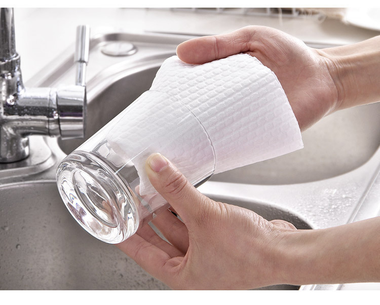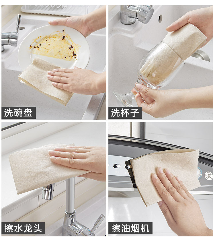 두꺼운 세척 가능한 인쇄 습식 및 건식 이중 사용 청소 그릇 세척 기름 없는 청소 천 주방 일회용 게으른 헝겊